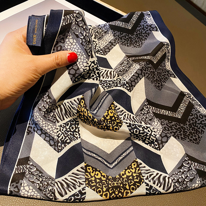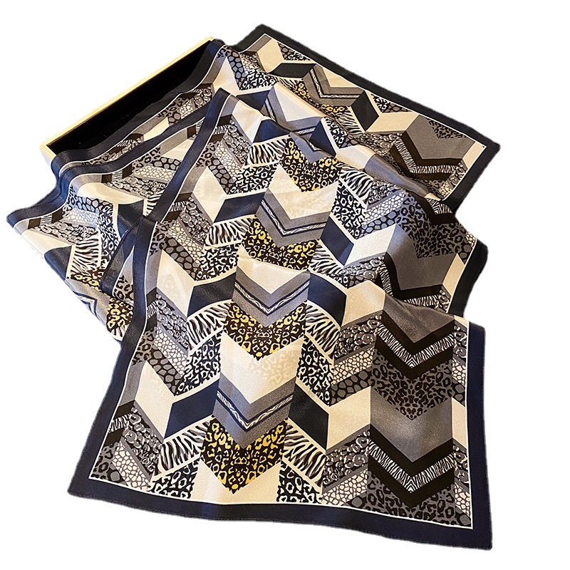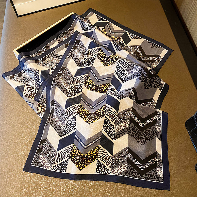 时尚条纹百搭真丝双绉长巾春夏清新简约气质款桑蚕丝丝巾围巾