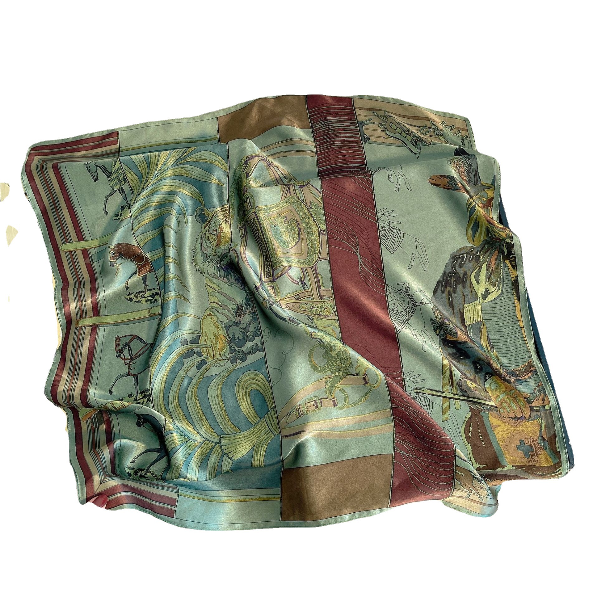 高档绿色桑蚕丝丝巾女秋款洋气时尚百搭中方巾真丝丝巾装饰围巾