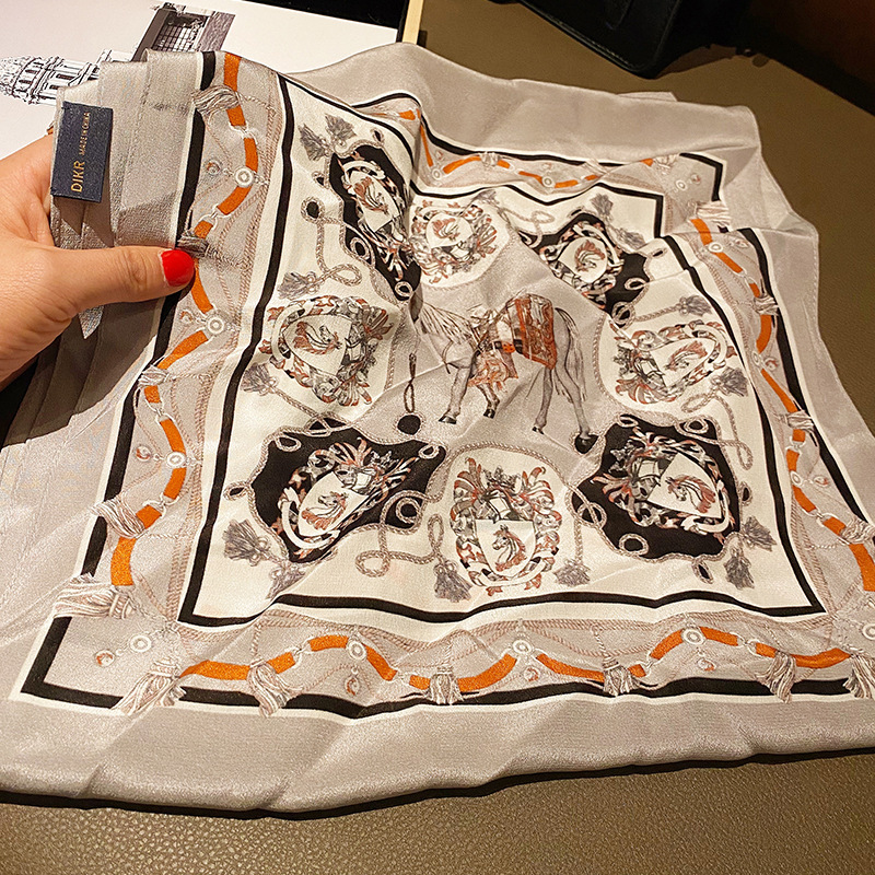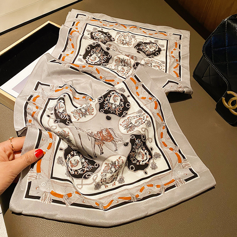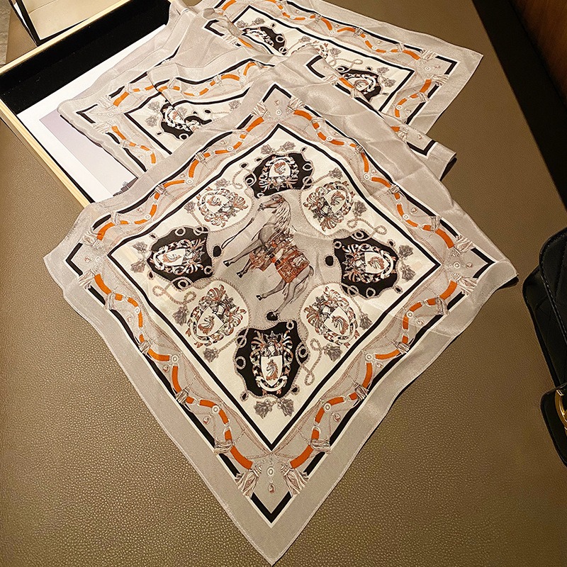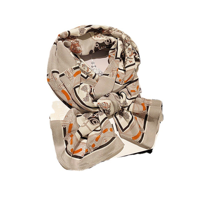日韩甜美骏马链条真丝围巾100%桑蚕丝长条飘带双面领巾百搭丝巾