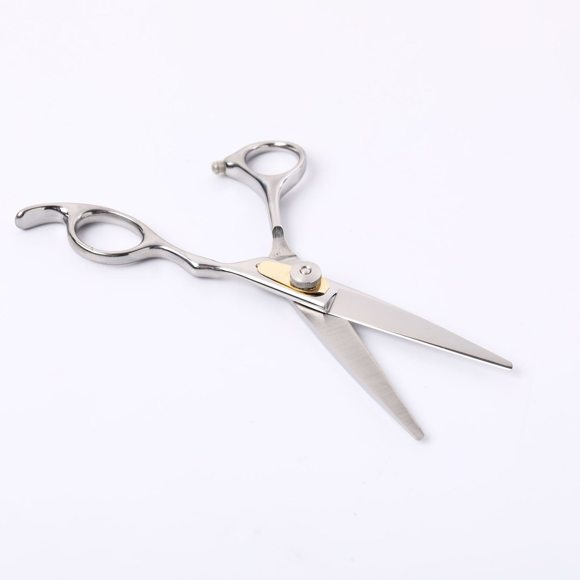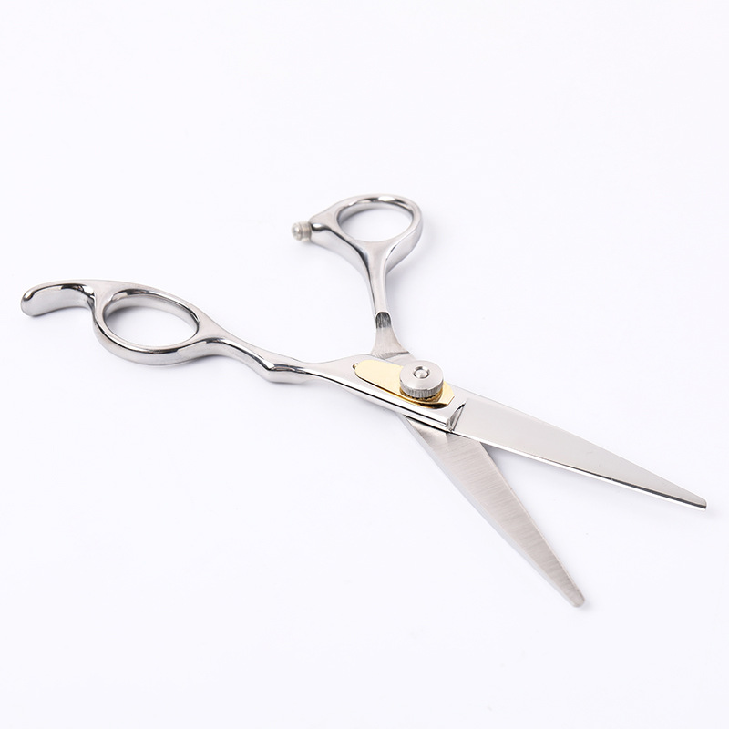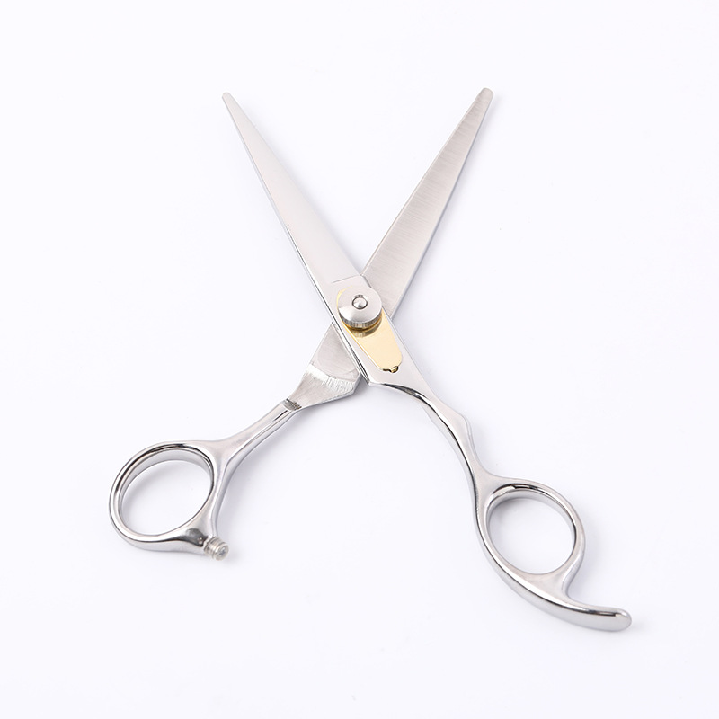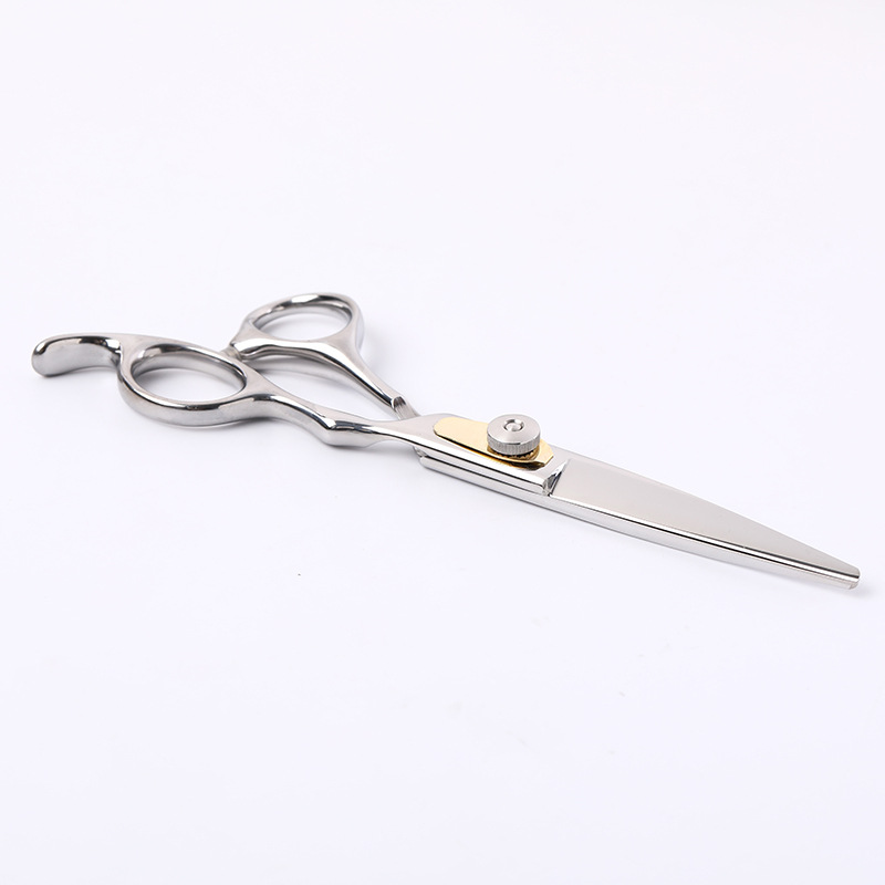 外贸专供精压手型压簧片理发剪刀 银色不锈钢美发剪 长发平剪