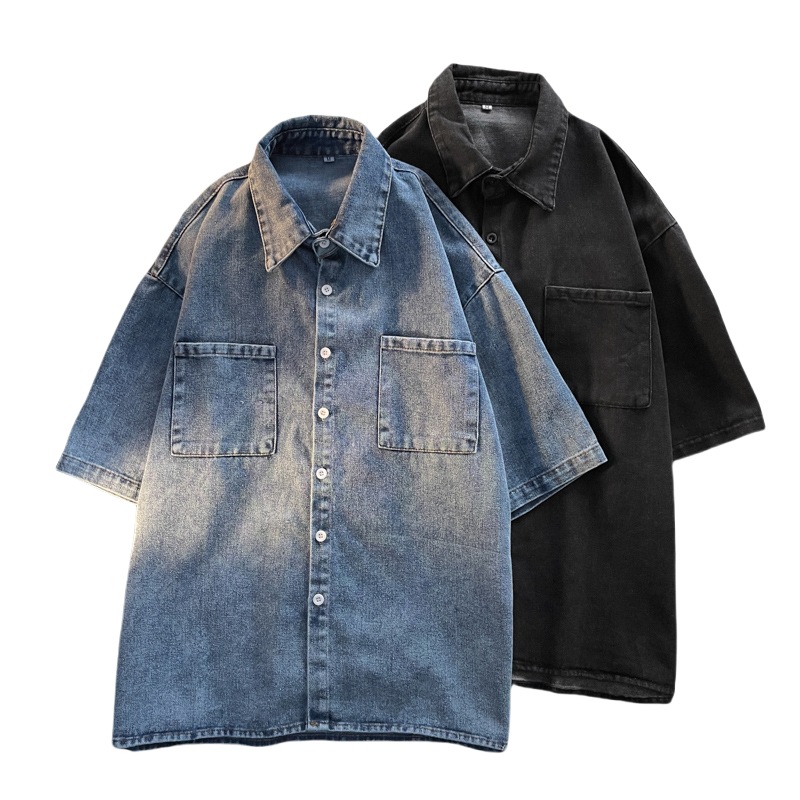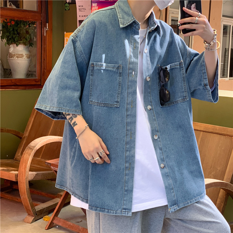 痞帅衬衫男短袖夏季港风日系牛仔衬衣休闲潮流薄款外套高级感上衣