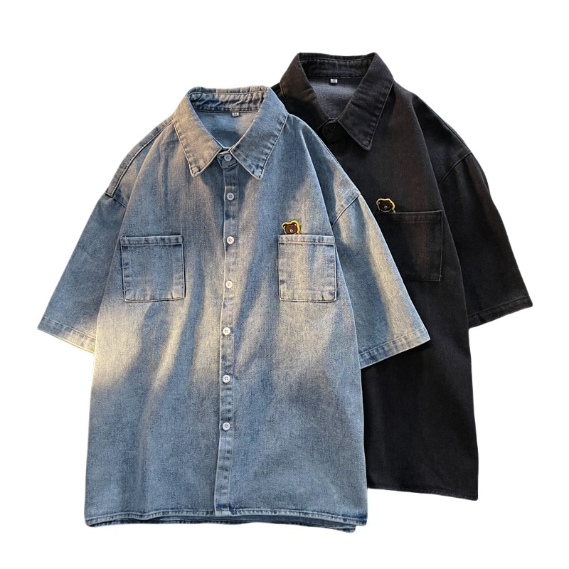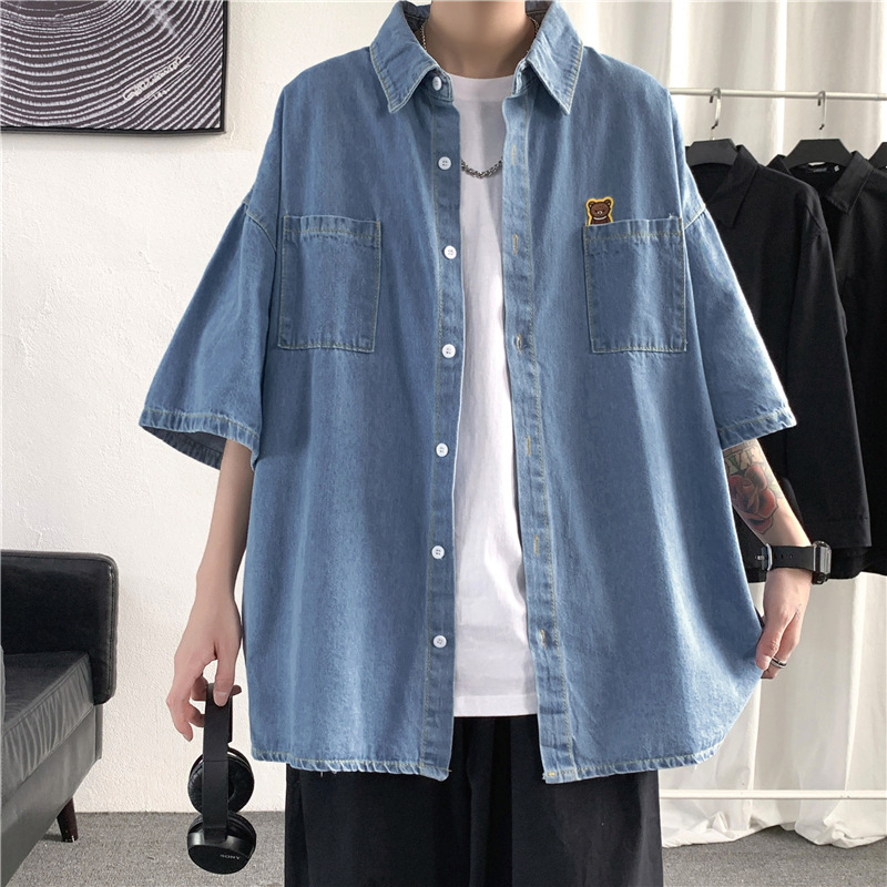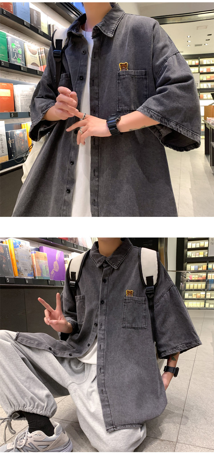 夏季高级感日系牛仔衬衫男士夏季新款青少年小清新短袖外套