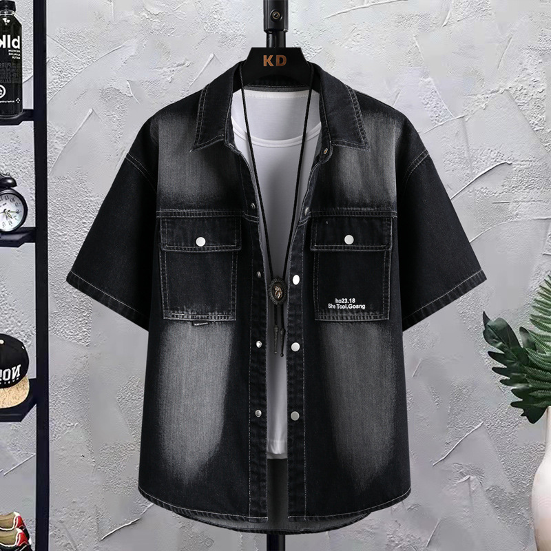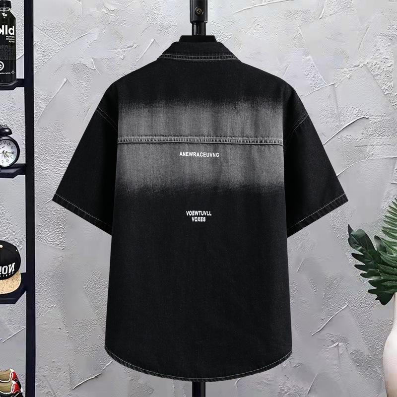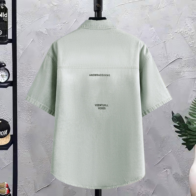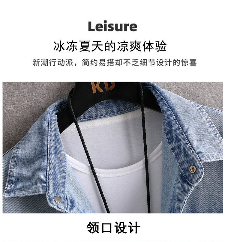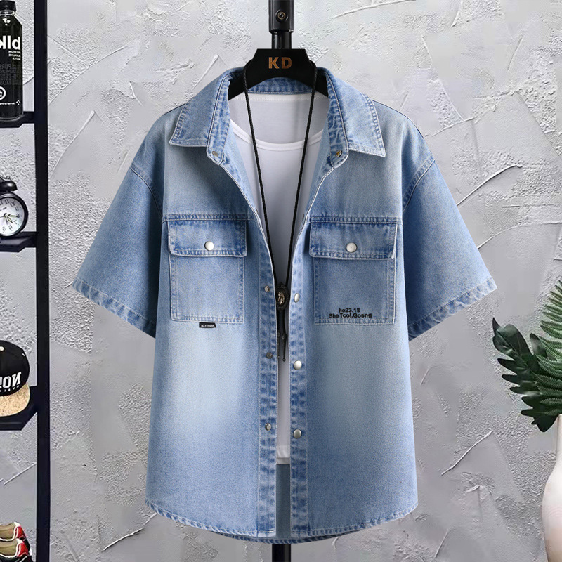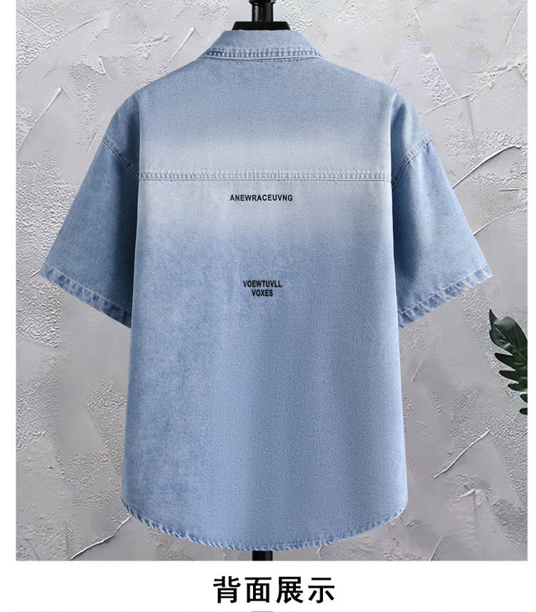 新款短袖牛仔衬衫男生夏季薄款潮流衬衣青少年宽松休闲外套