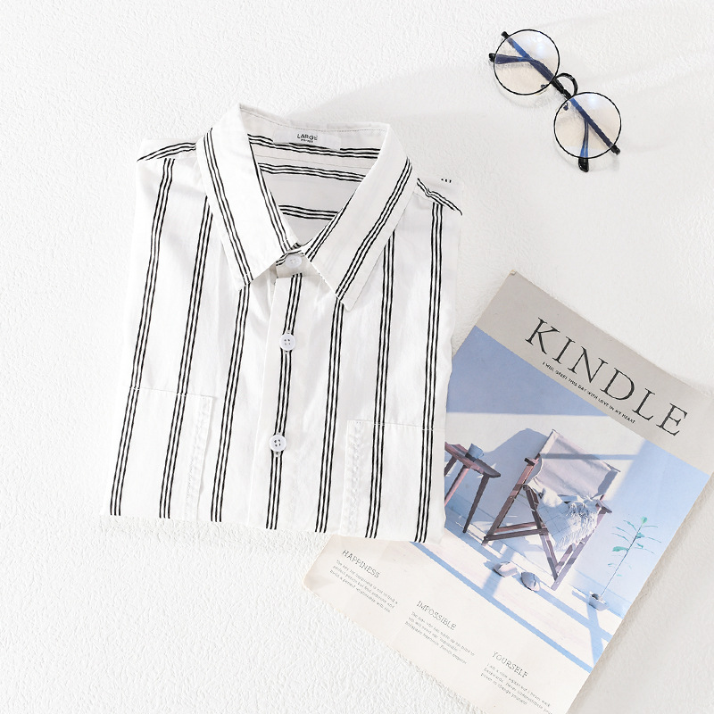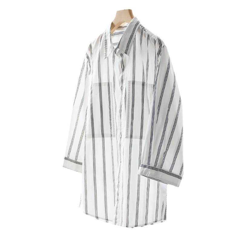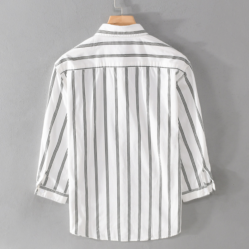 新夏季日系复古条纹七分袖衬衫男士文艺港风潮青年半中袖休闲衬衣