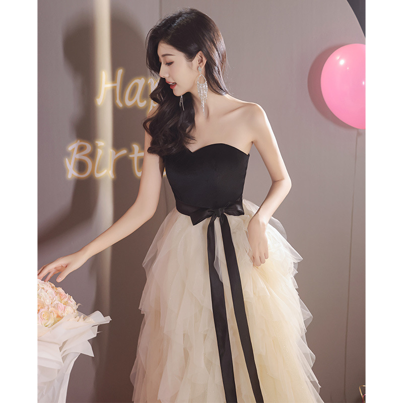 晚礼服高级感轻奢名媛生日party年会拼接网纱抹胸艺考连衣裙宴会