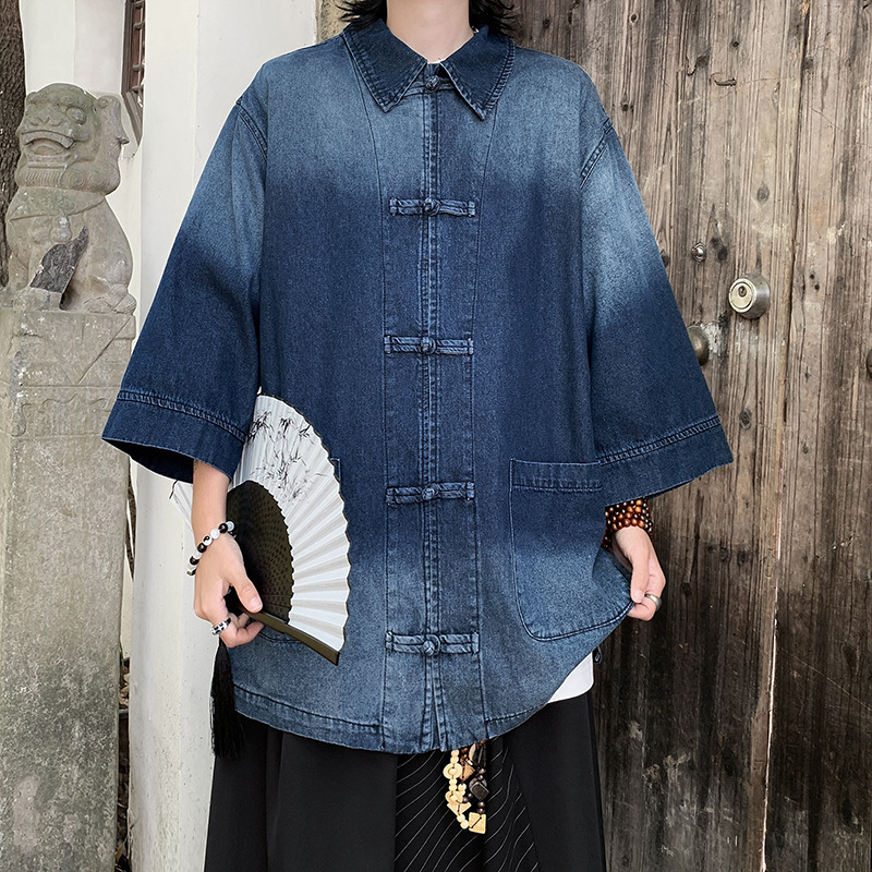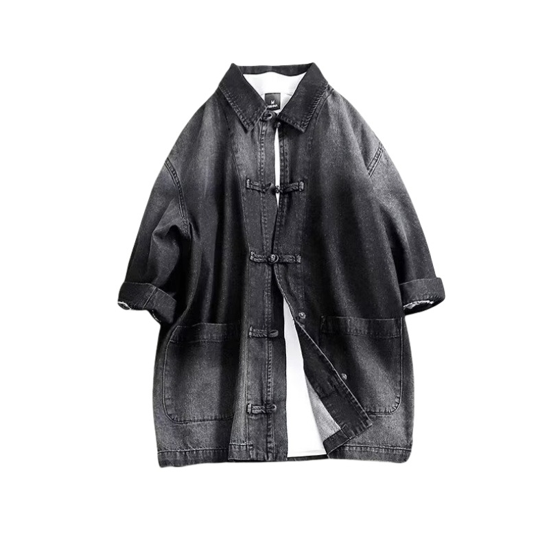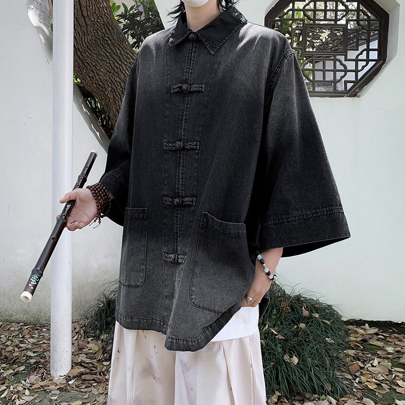 港风新款新中式男装中国风盘扣长袖衬衫男国潮衬衣外套春秋