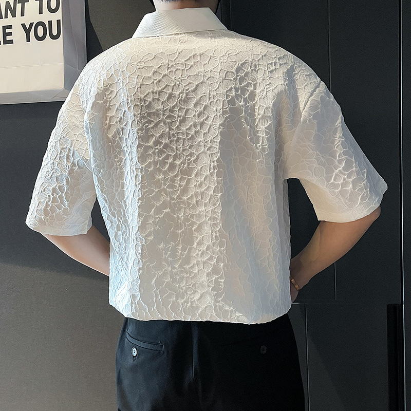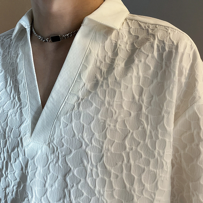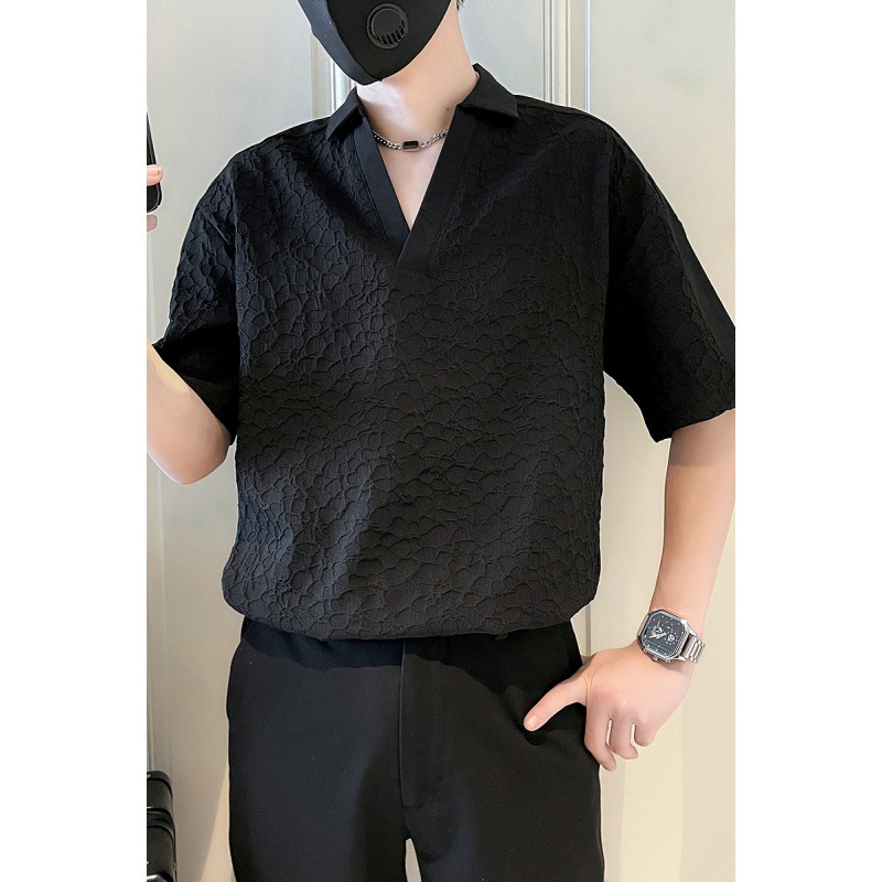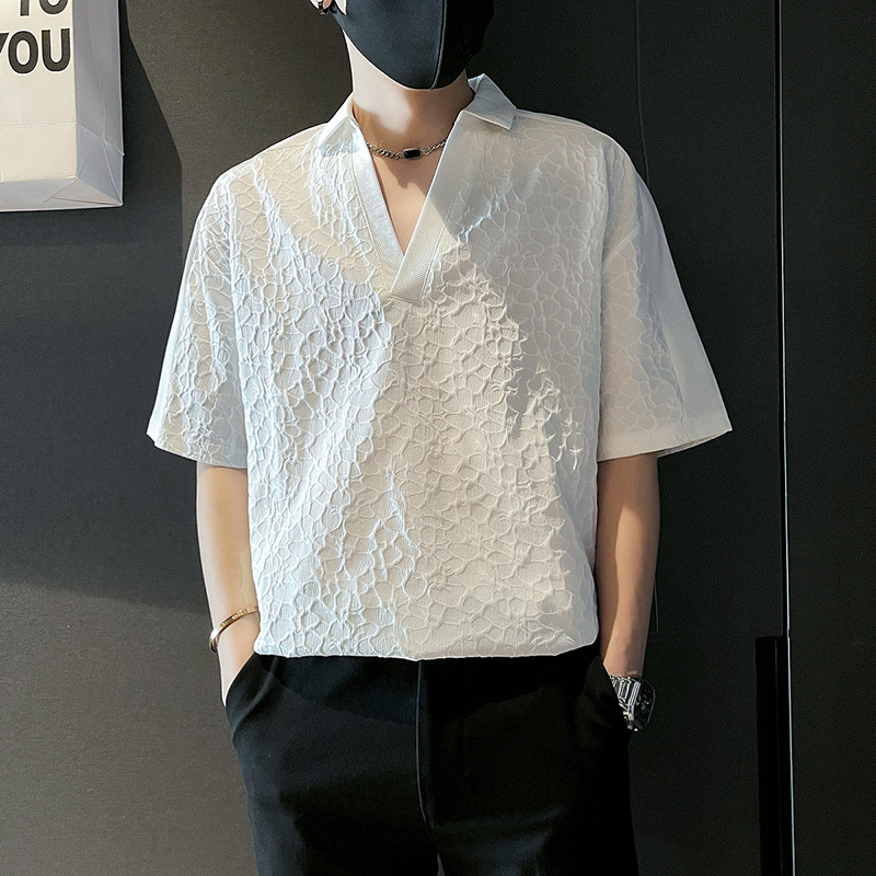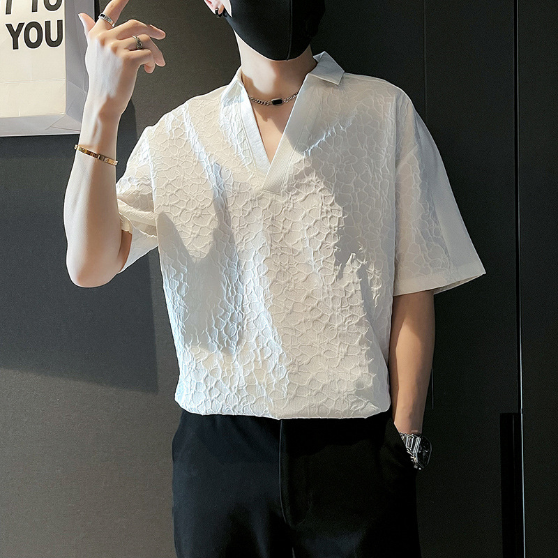v领男士t恤短袖夏季冰丝新款衬衫痞帅风潮牌7七分中袖polo衫