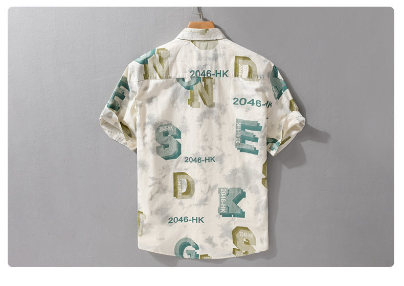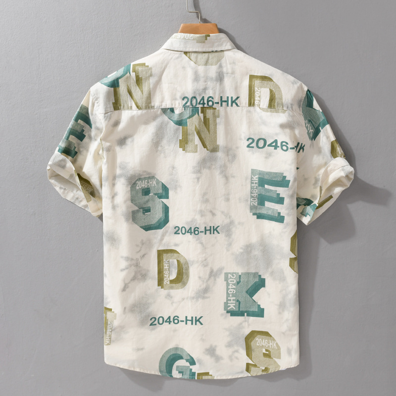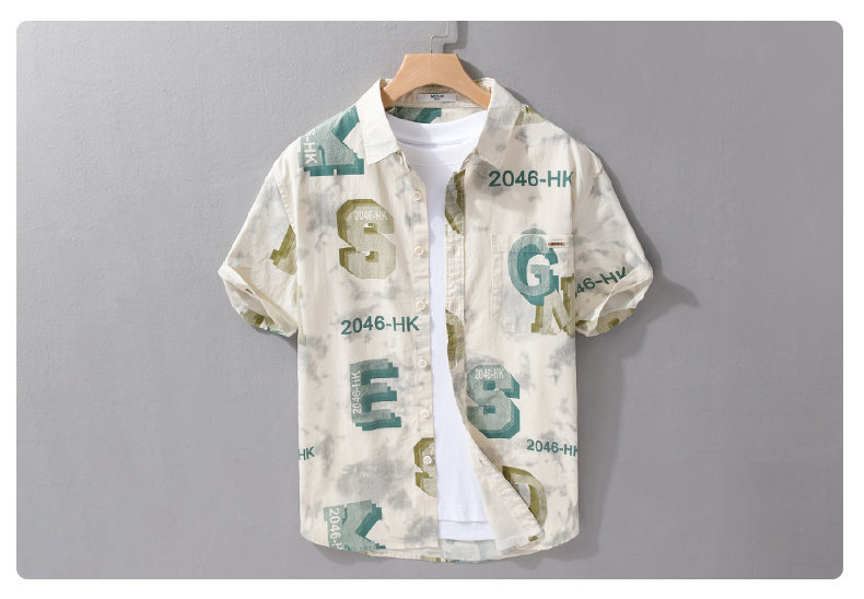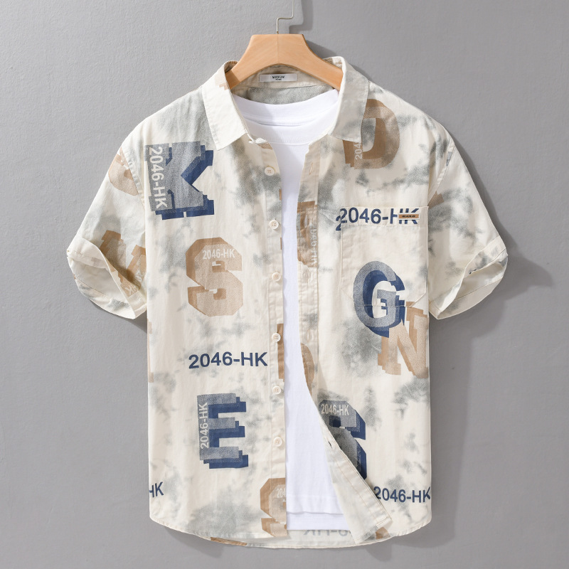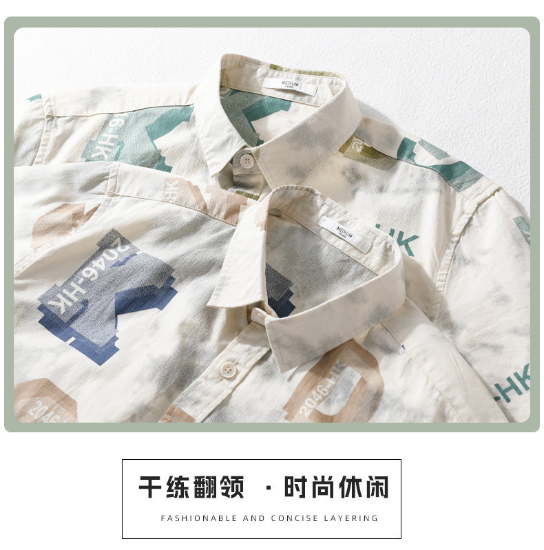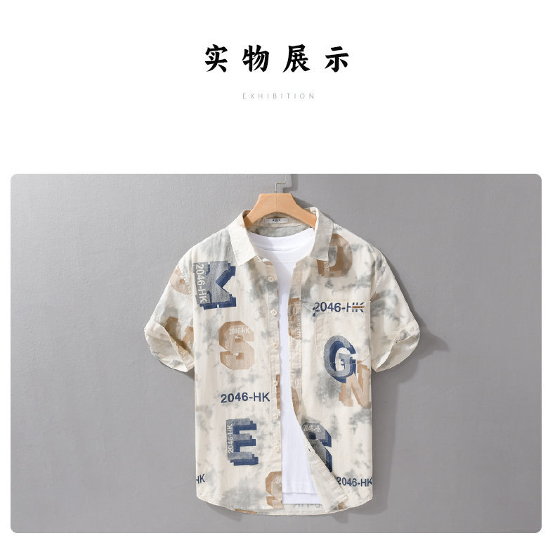 男士夏季新款五分短袖衬衫韩版潮流外套宽松潮牌印花学生休闲衬衣