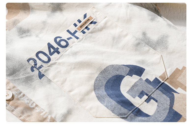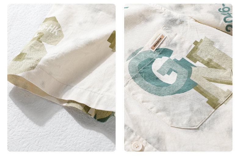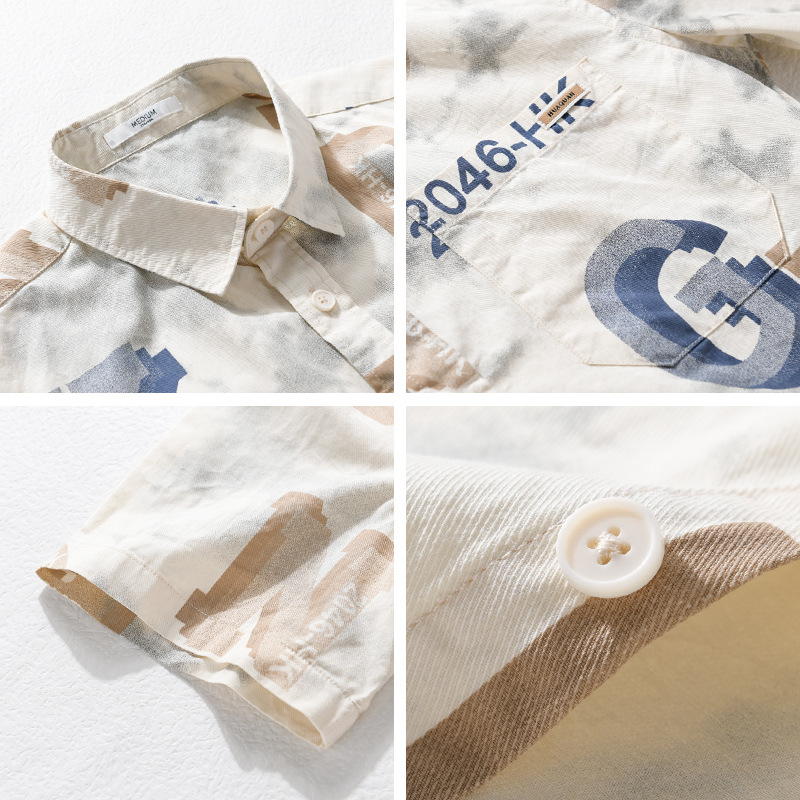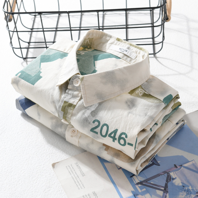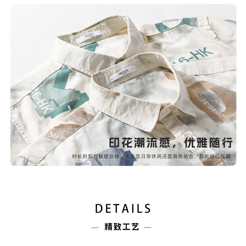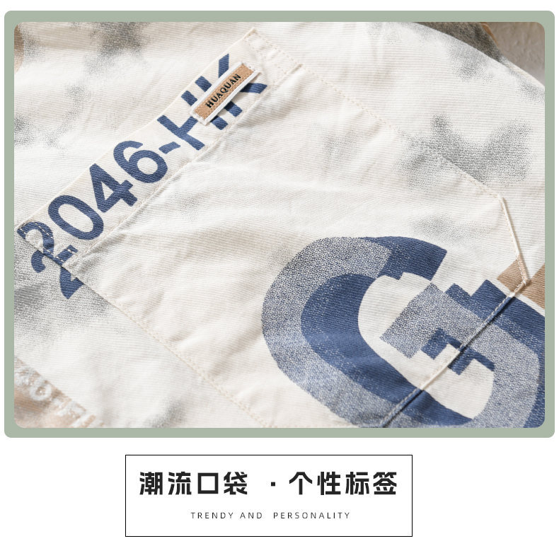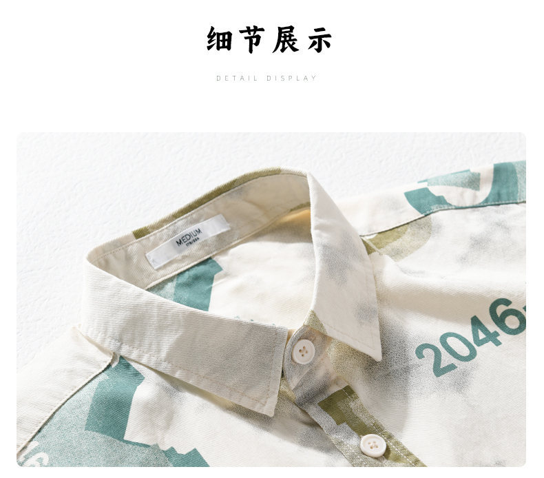 男士夏季新款五分短袖衬衫韩版潮流外套宽松潮牌印花学生休闲衬衣