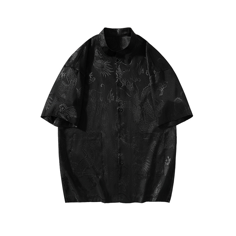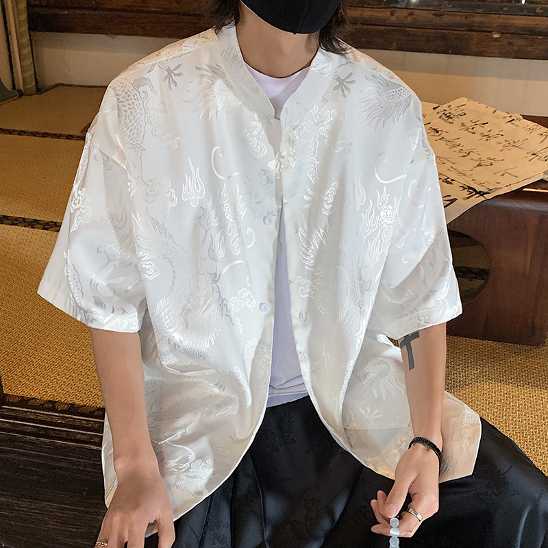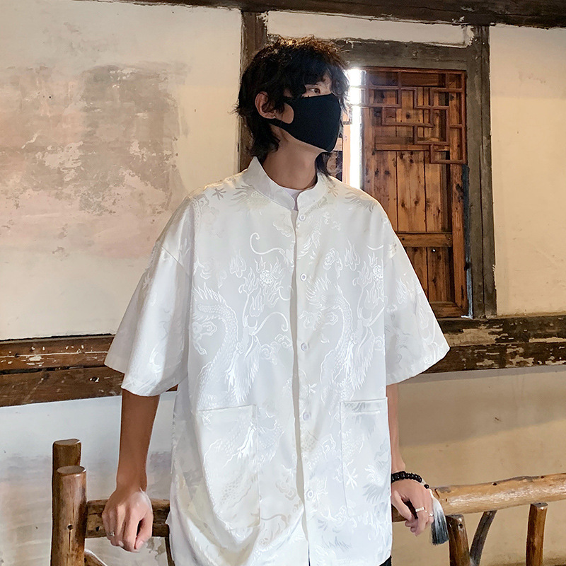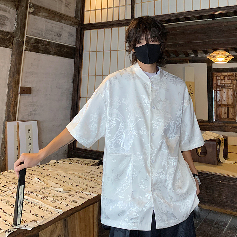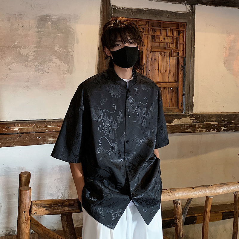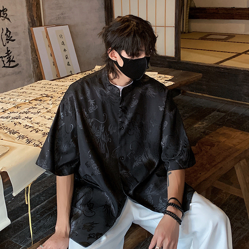 夏季新中式唐装冰丝衬衣国风大码短袖衬衫男装复古国潮中袖潮