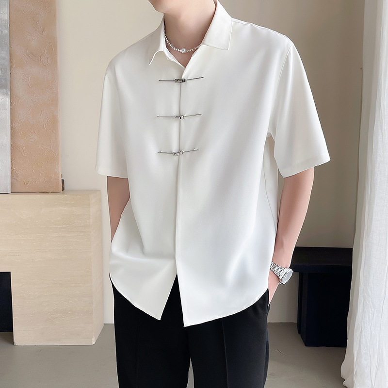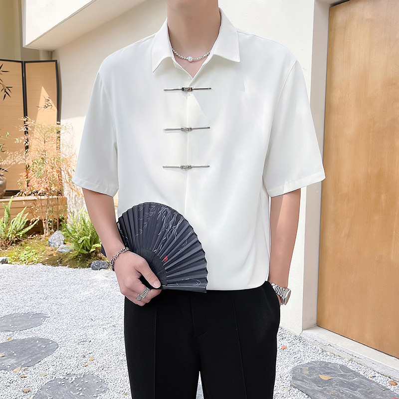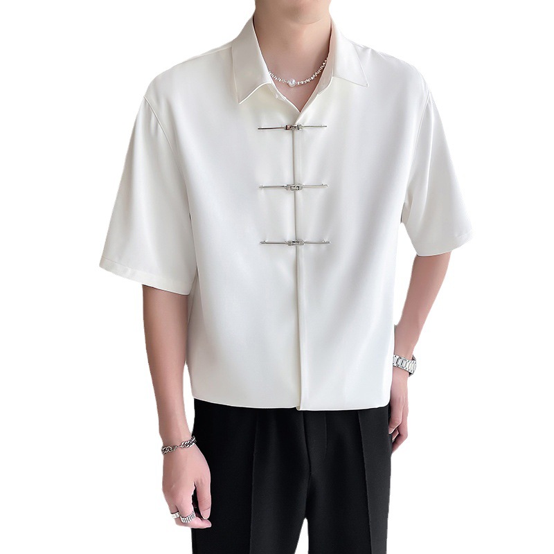 新中式国风衬衫男士短袖痞帅冰丝薄款潮牌潮流宽松高级感男装衬衣