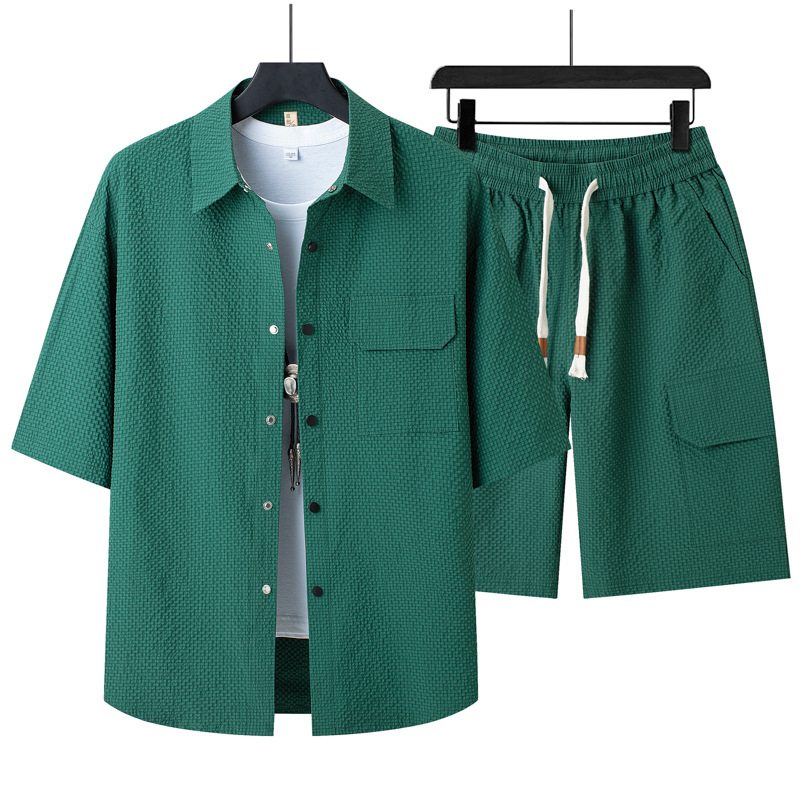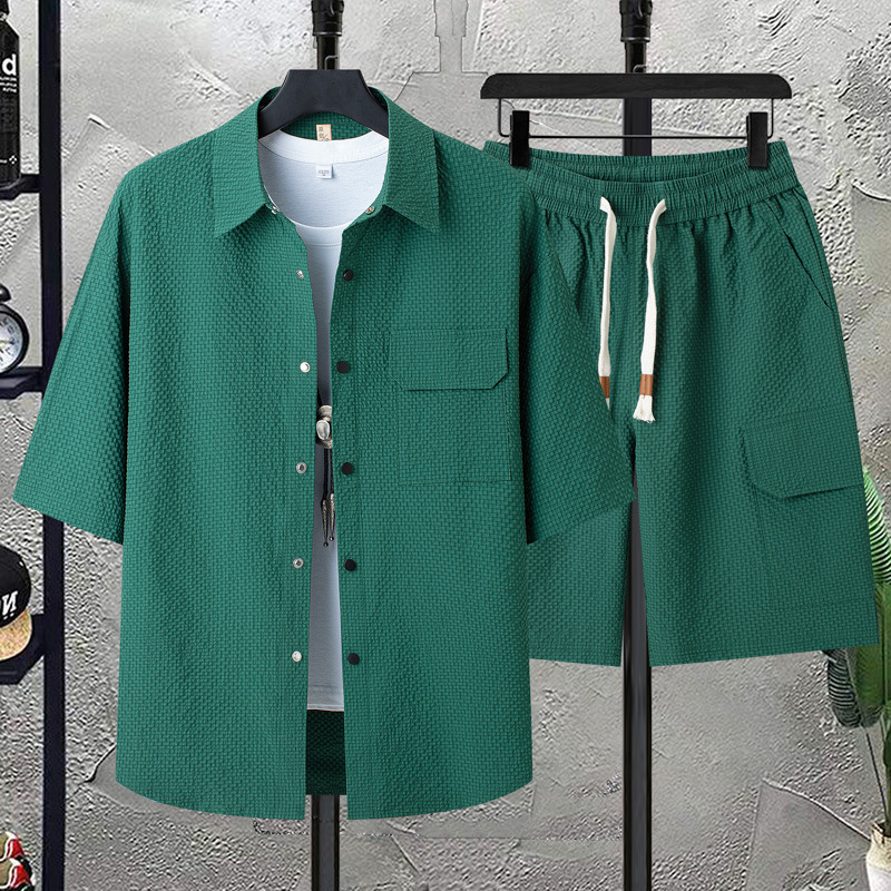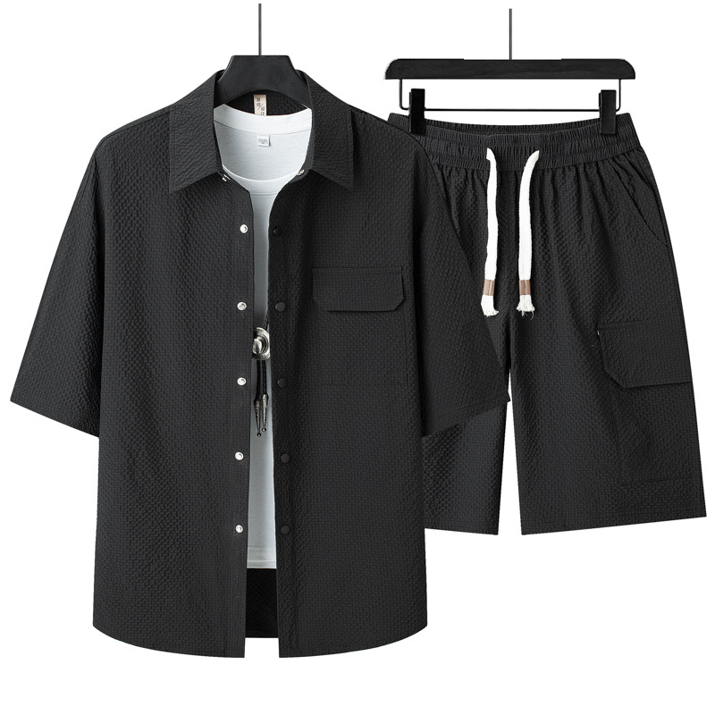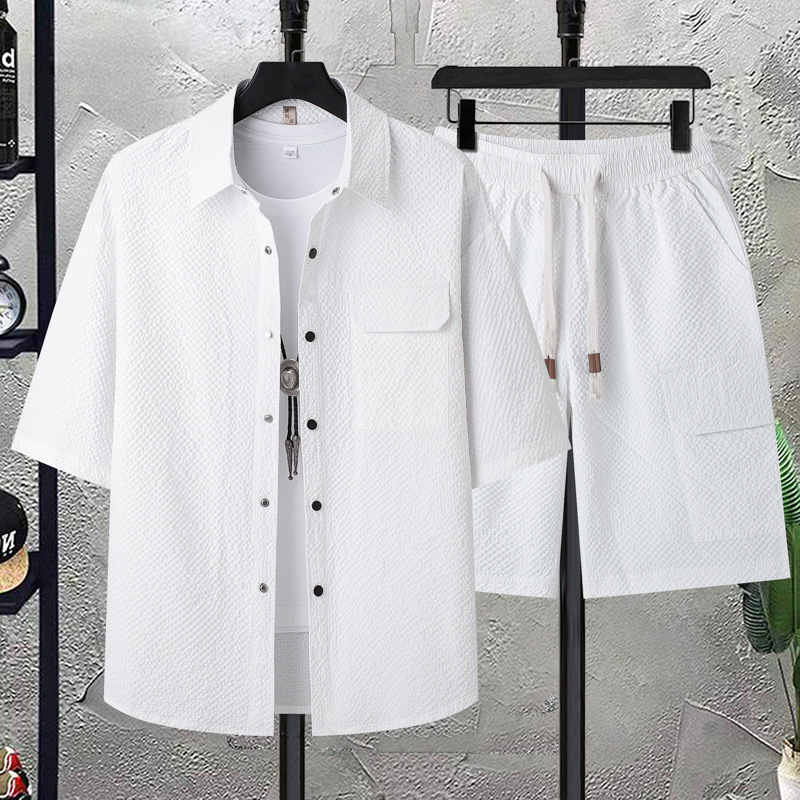 夏季新款套装青少年时尚潮流百搭衬衫短袖短裤两件套舒适透气