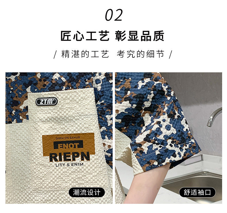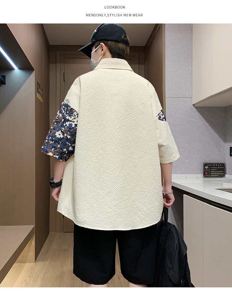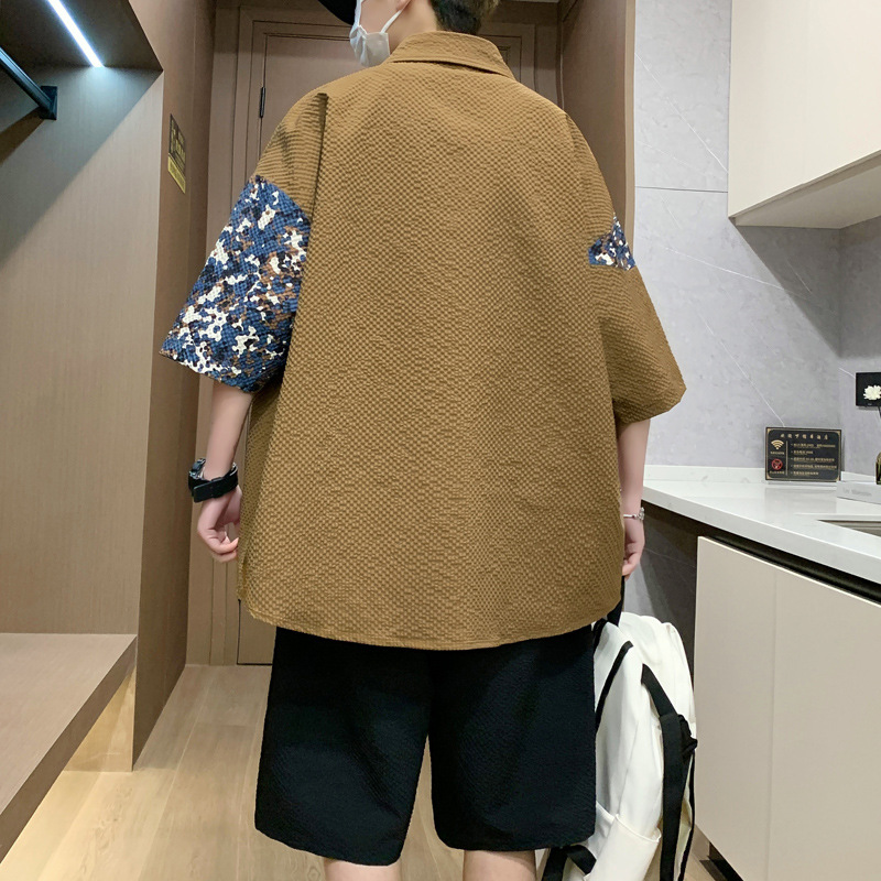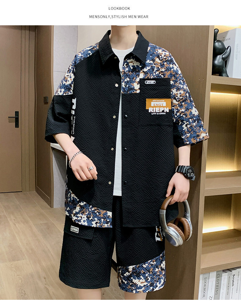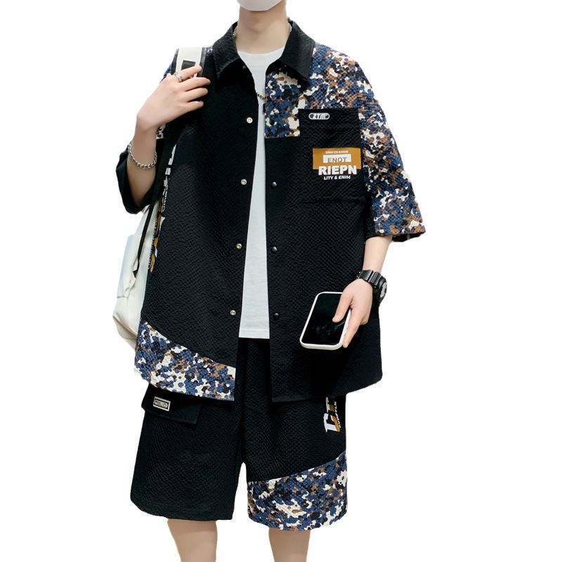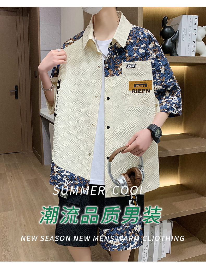 夏季港风衬衣套装青少年时尚潮流百搭衬衫短袖短裤套装男