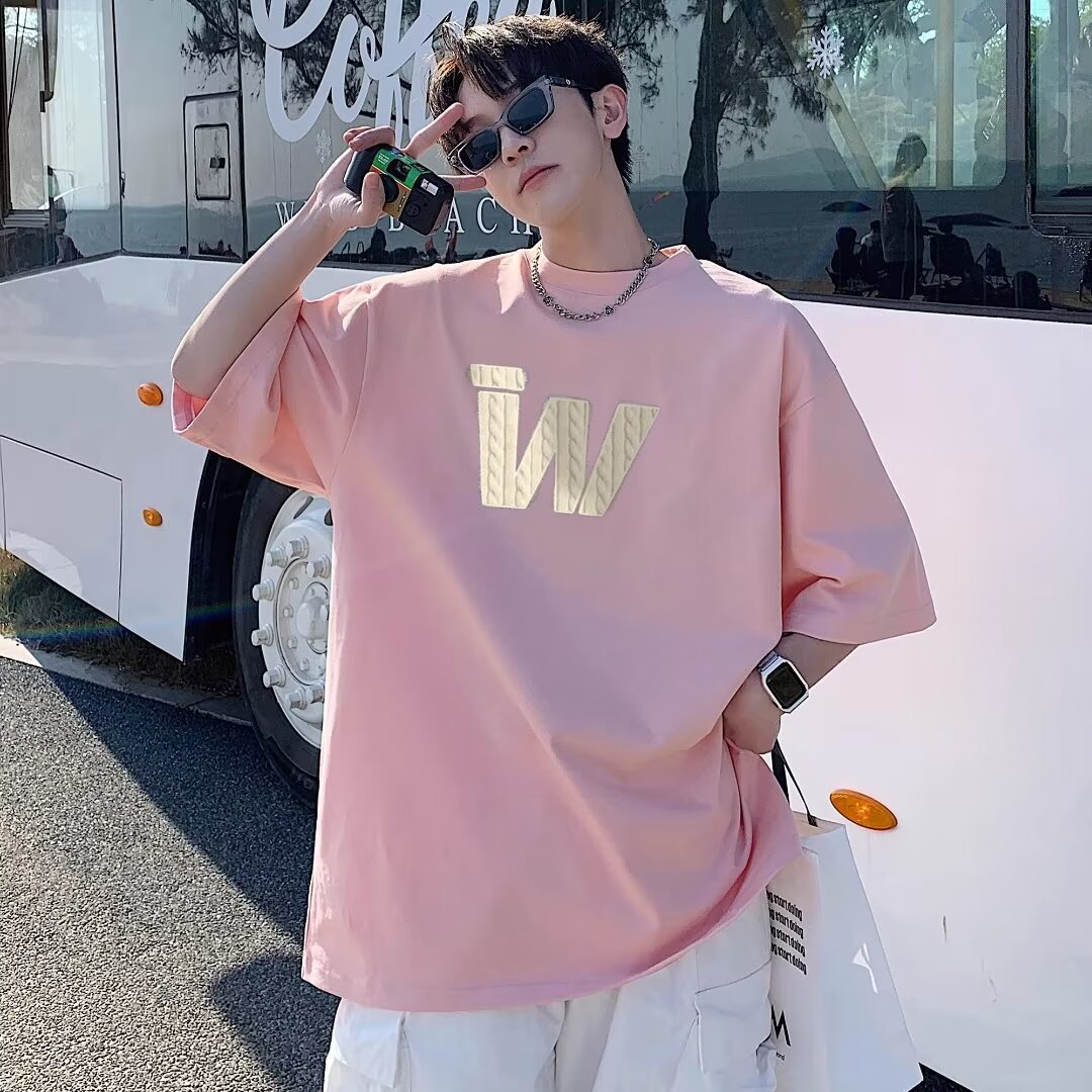 美式短袖t恤男生夏季上衣服情侣学生纯棉五分袖t血印花圆领