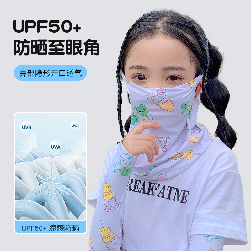 儿童防晒面罩女孩夏季冰丝防紫外线遮阳全脸一体面罩男童护颈围脖