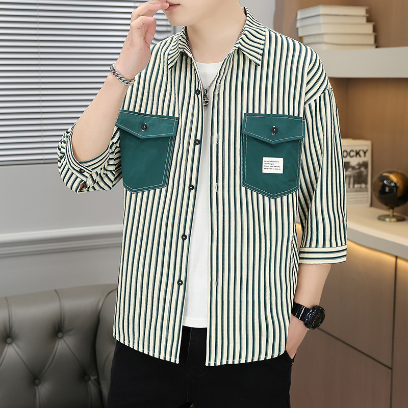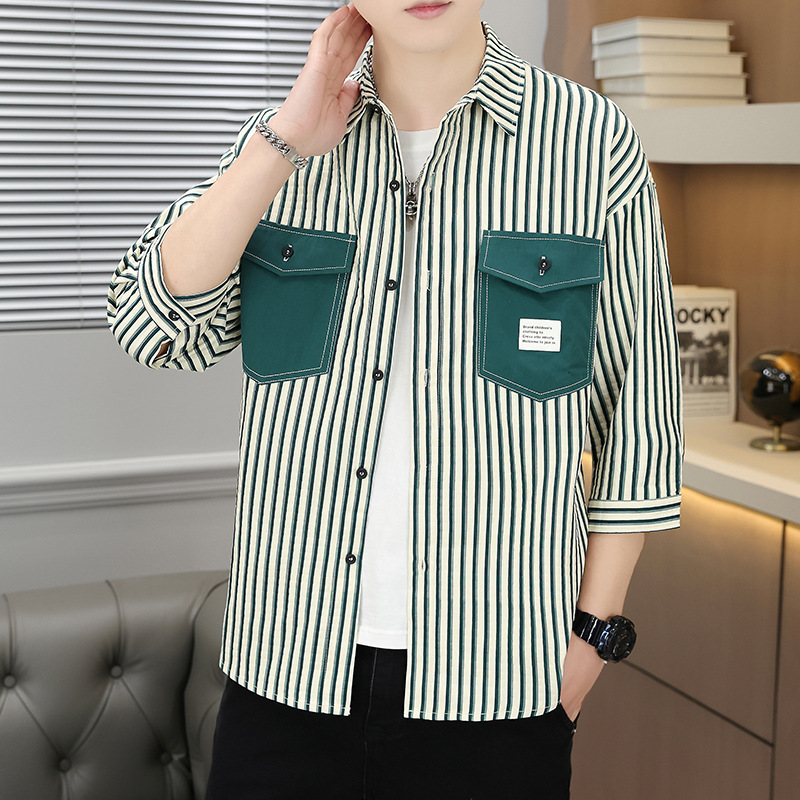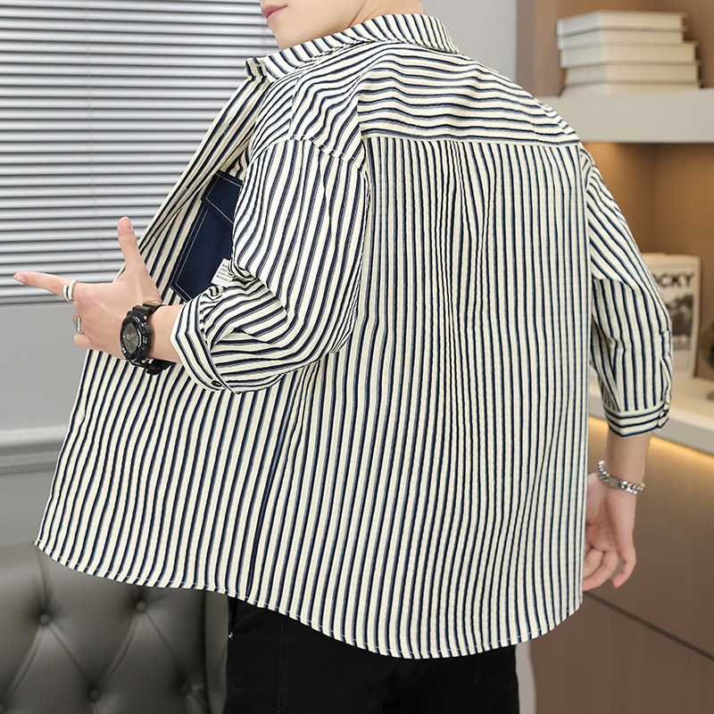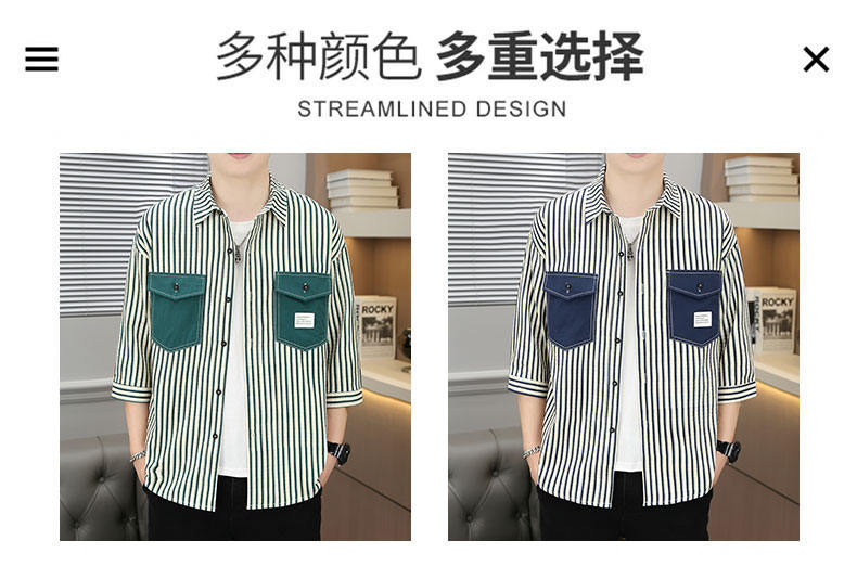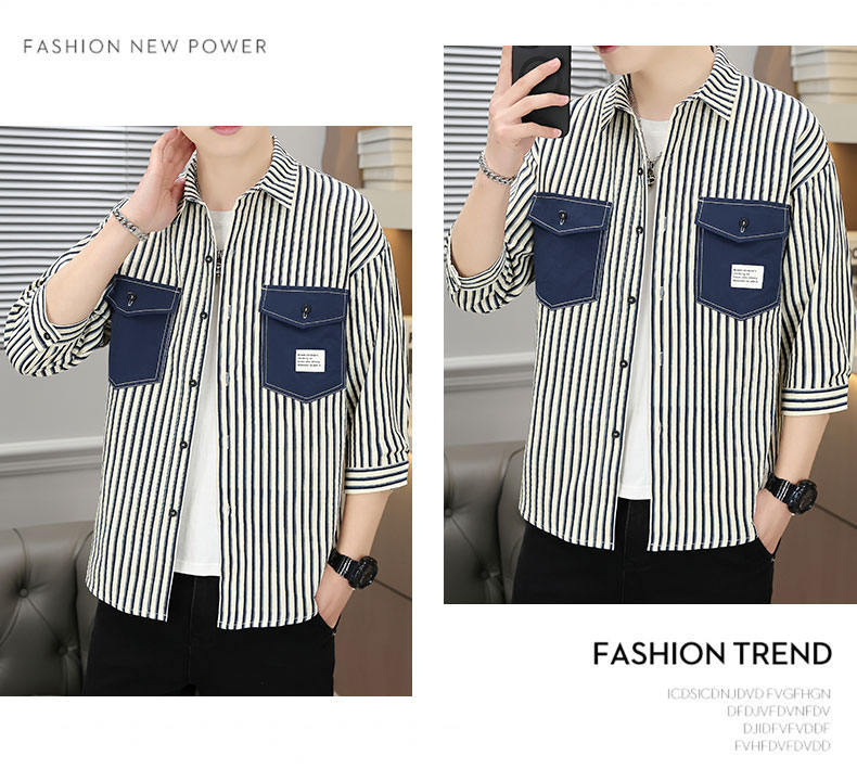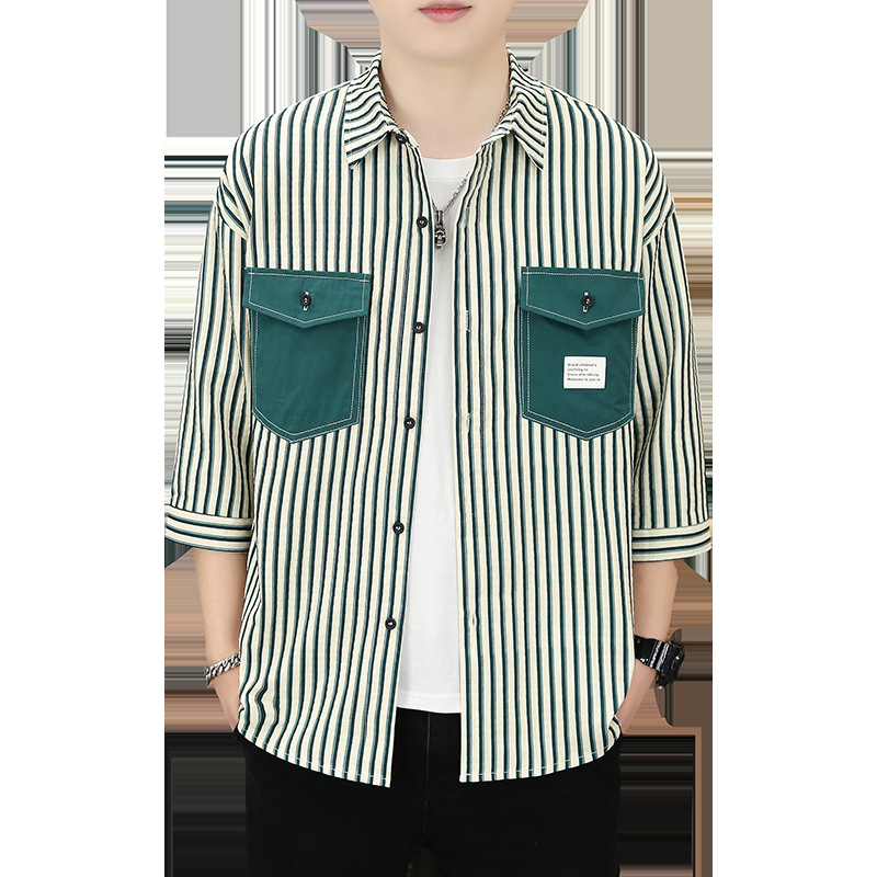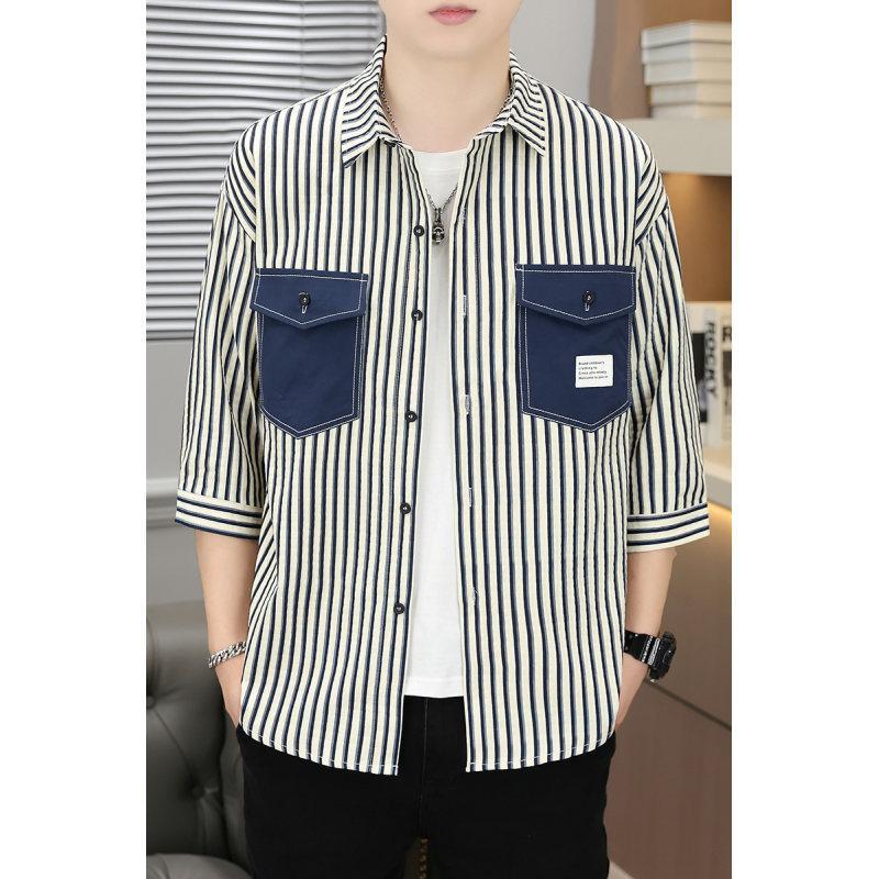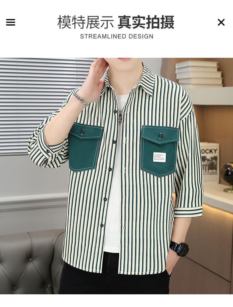 主推新款夏款男士潮流韩版七分袖宽松印花衬衫