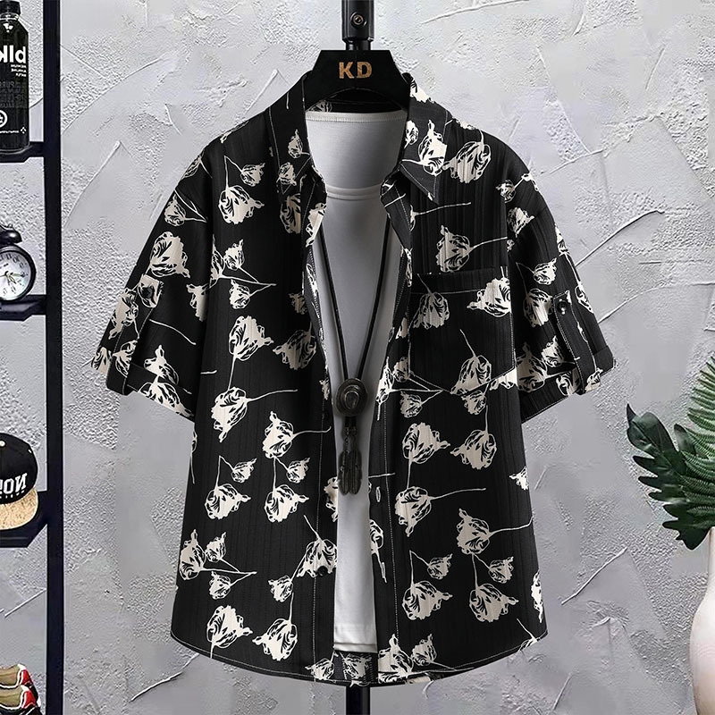 男士花衬衫短袖痞帅夏季新款休闲宽松夏天冰感碎花韩版衬衣