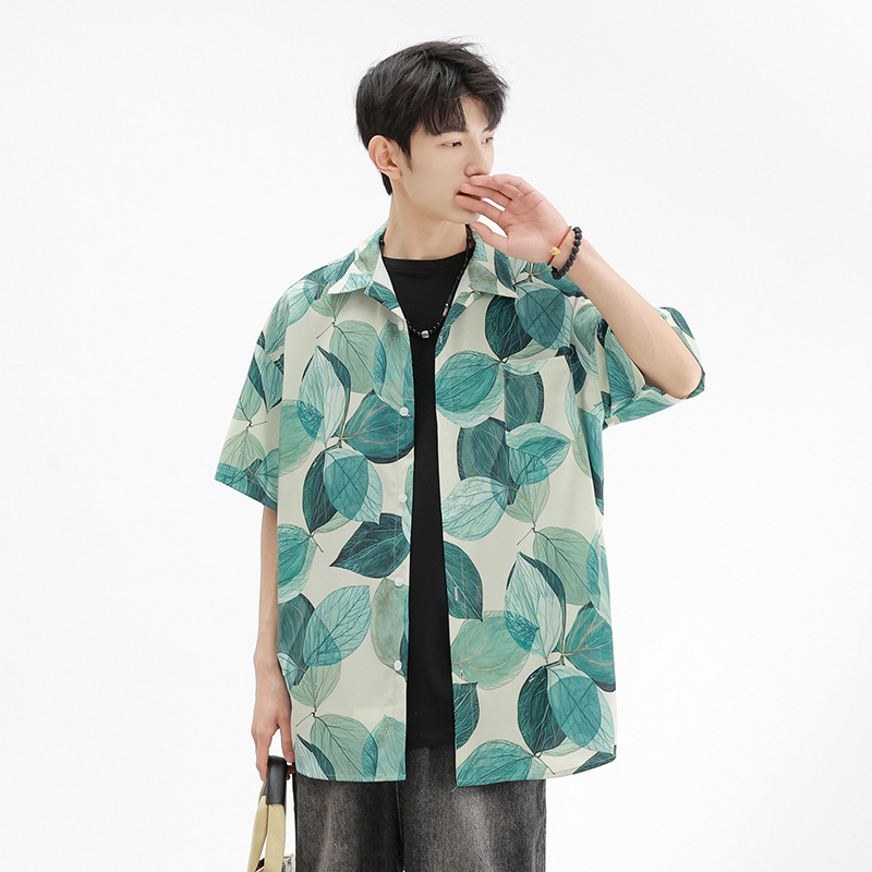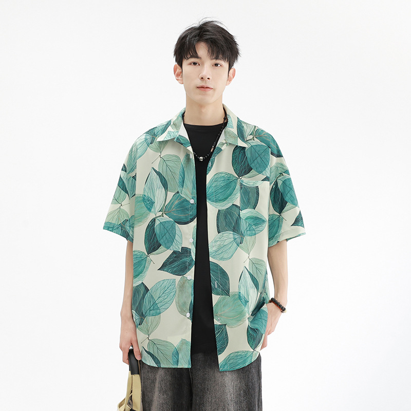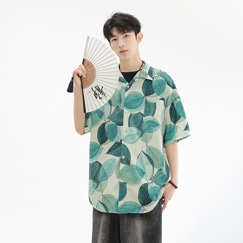 年夏季新款莫吉托男士短袖花衬衫休闲潮男装衬衣半袖外套