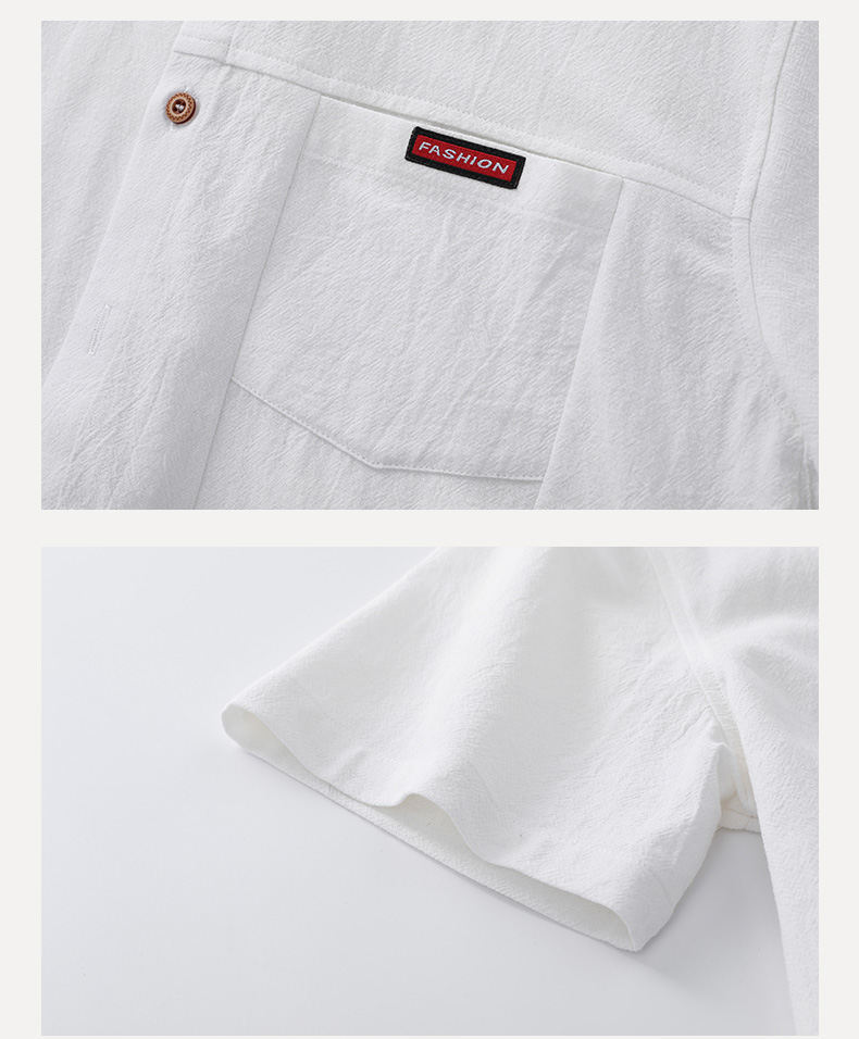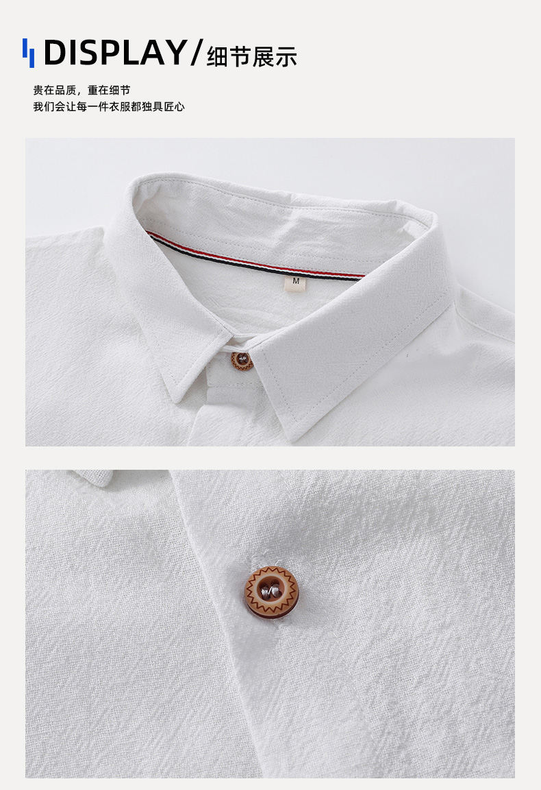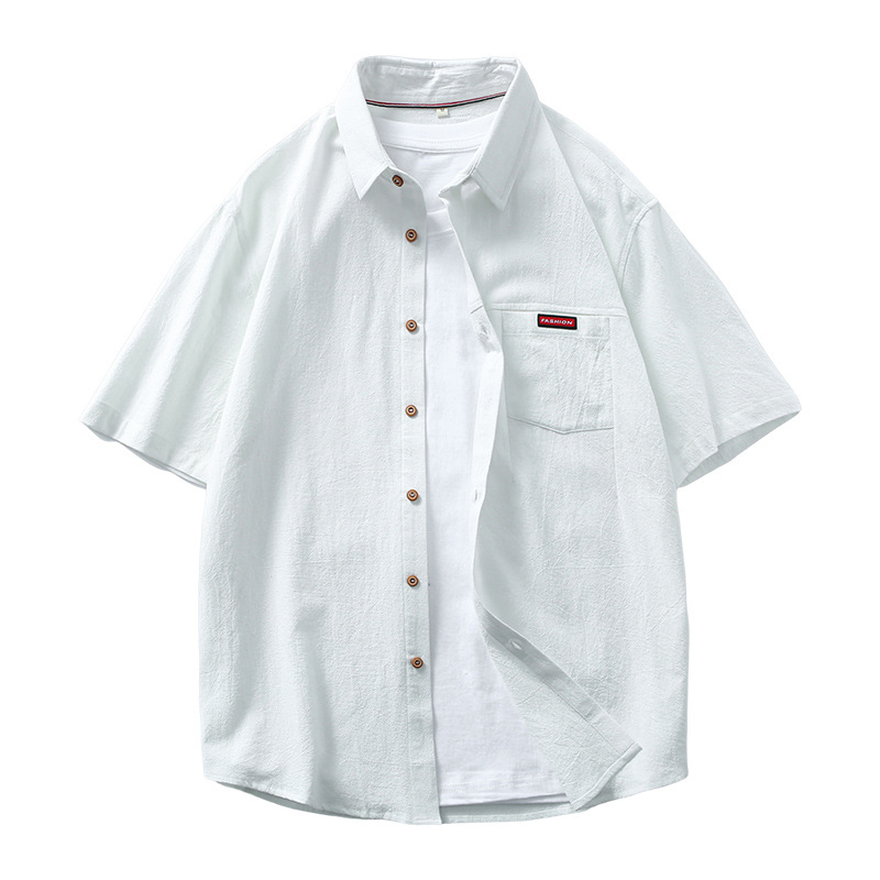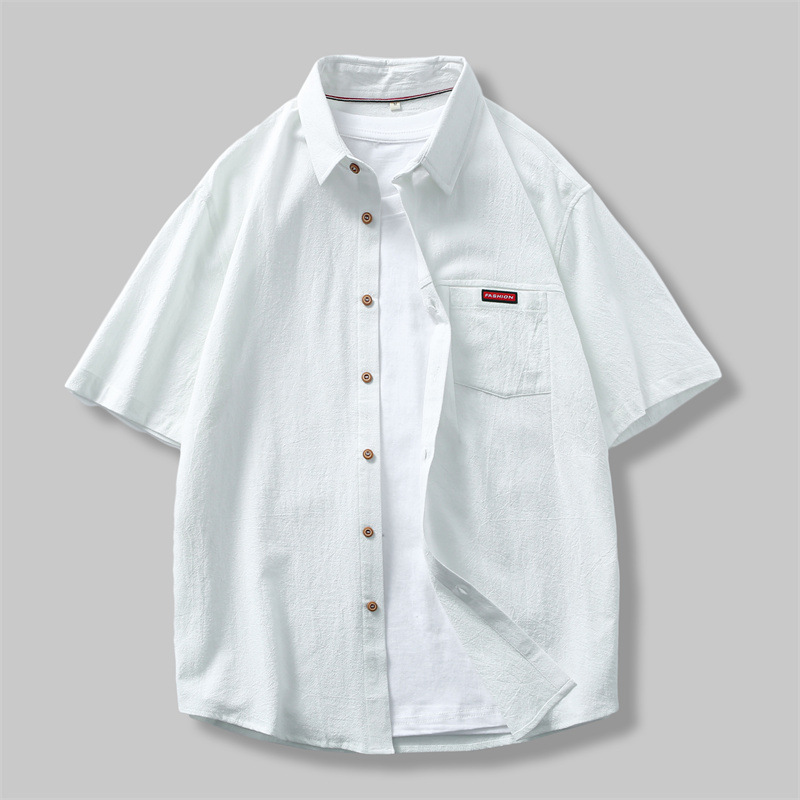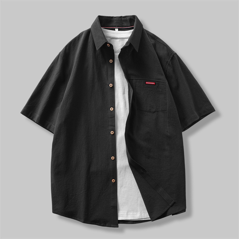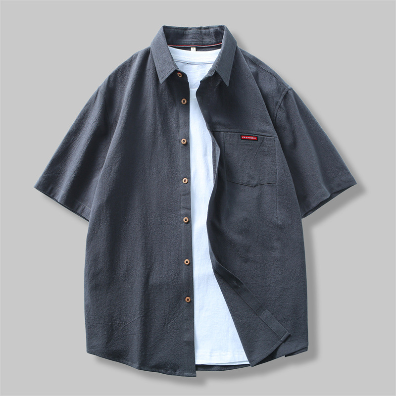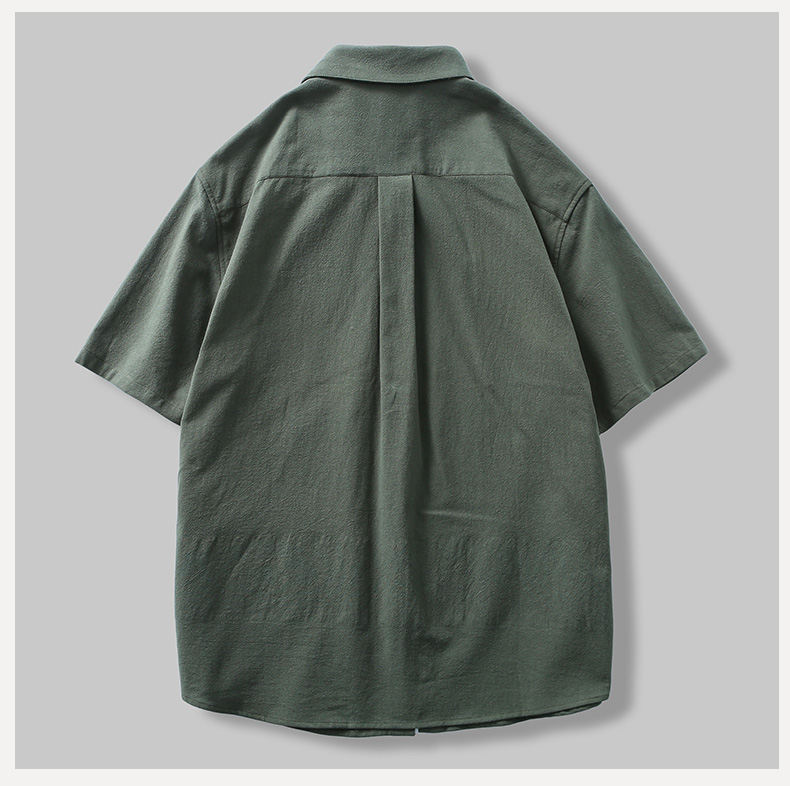 夏季新款男士全棉工装翻领短袖衬衫潮流男装亚麻宽松休闲衬衣