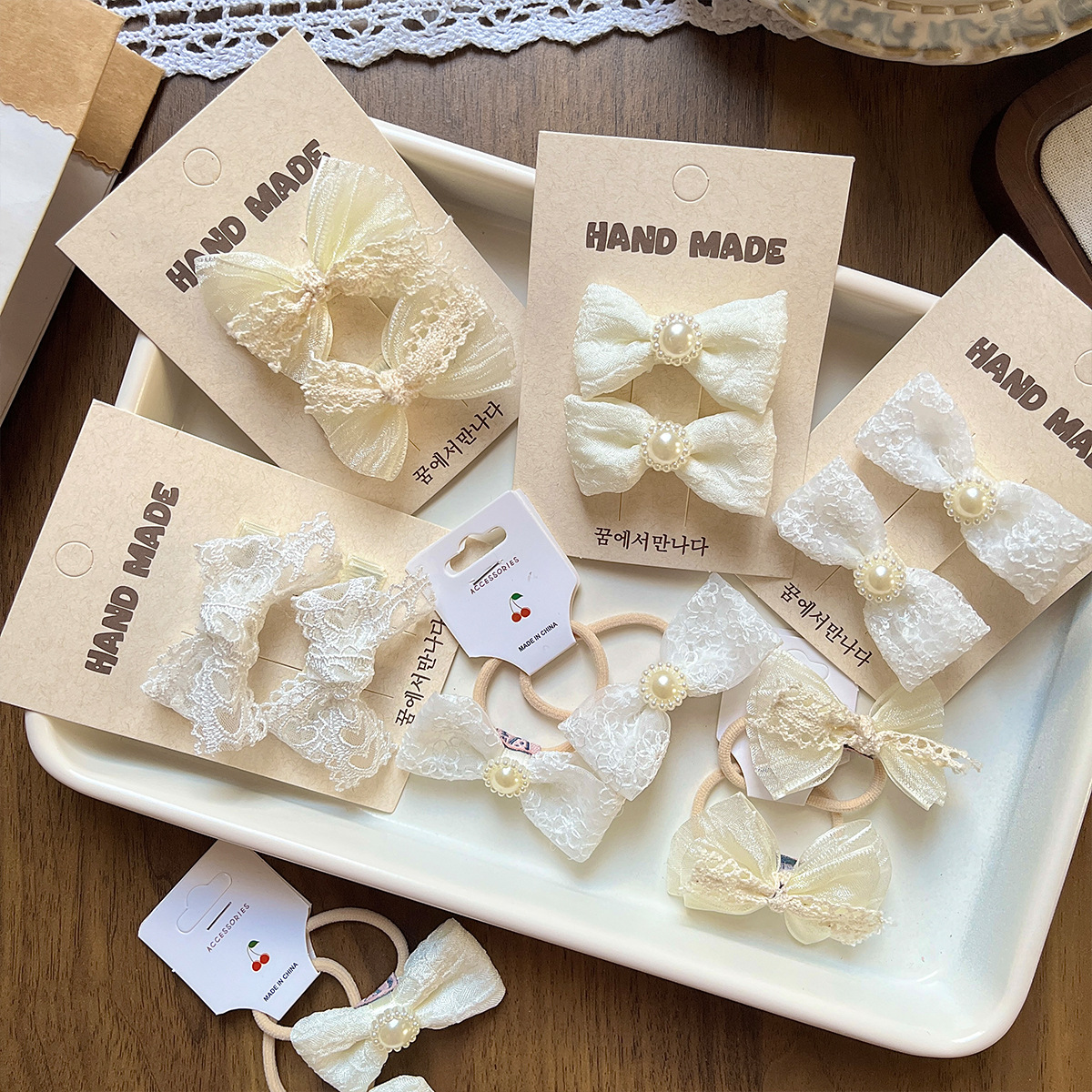 新款可爱蕾丝花边蝴蝶结发夹儿童珍珠刺绣花朵侧边刘海碎发发卡