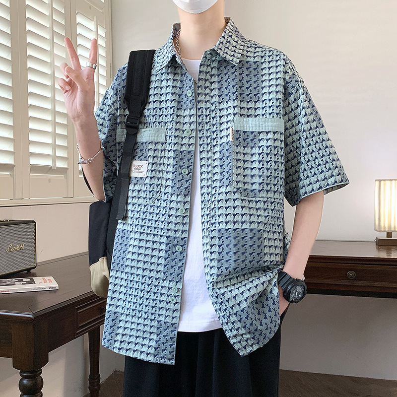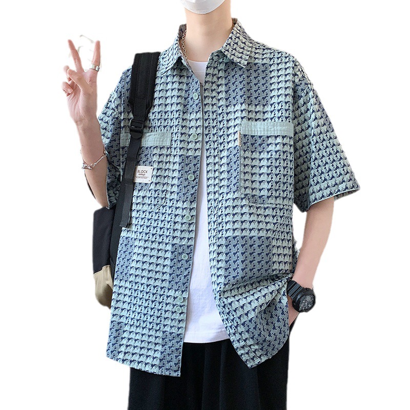 设计师通勤夏季新款短袖衬衫青年休闲民族风衬衫男