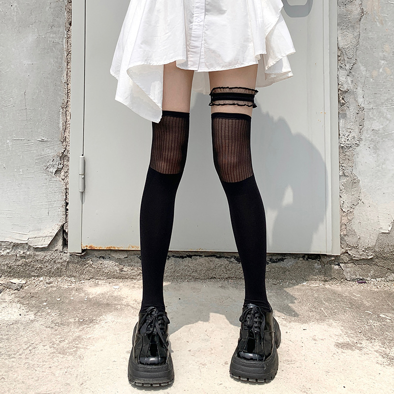 网红超火过膝袜 夏天黑丝性感白丝纯欲洛丽塔jk袜子薄款大腿袜潮