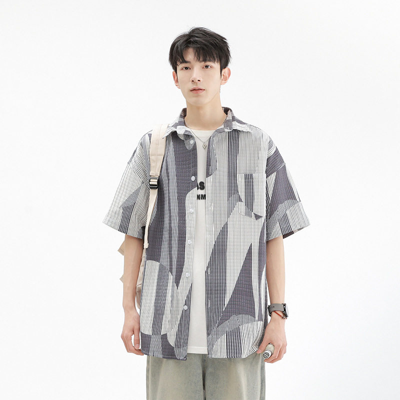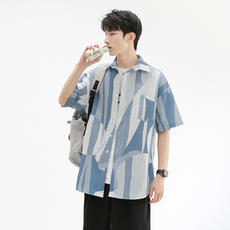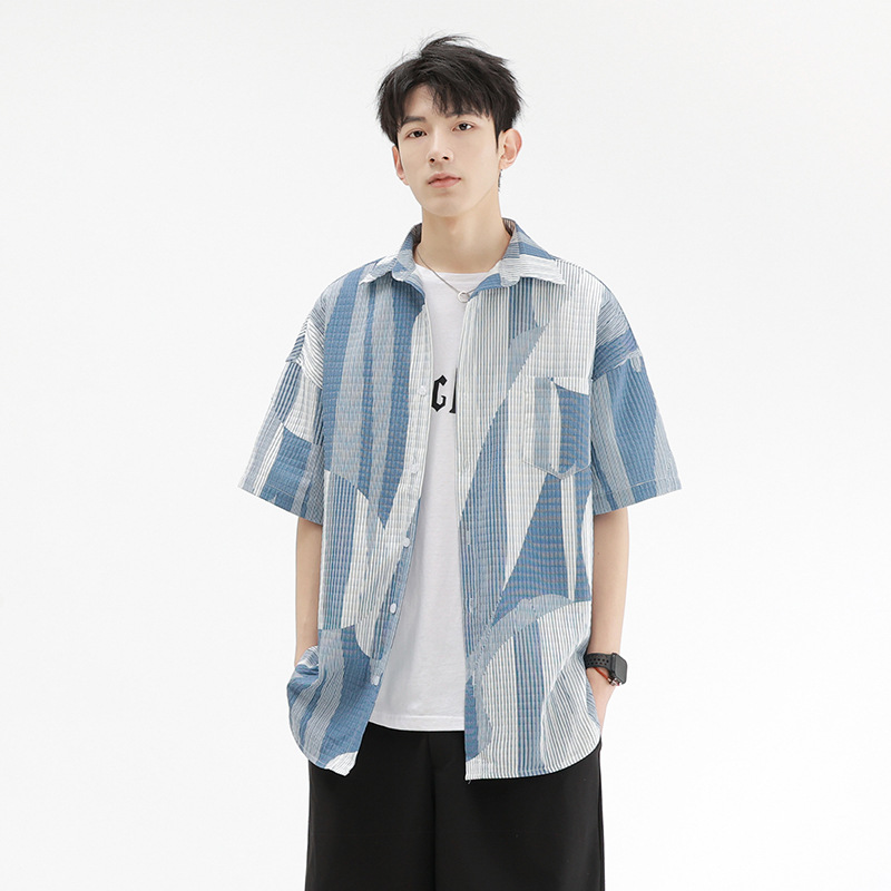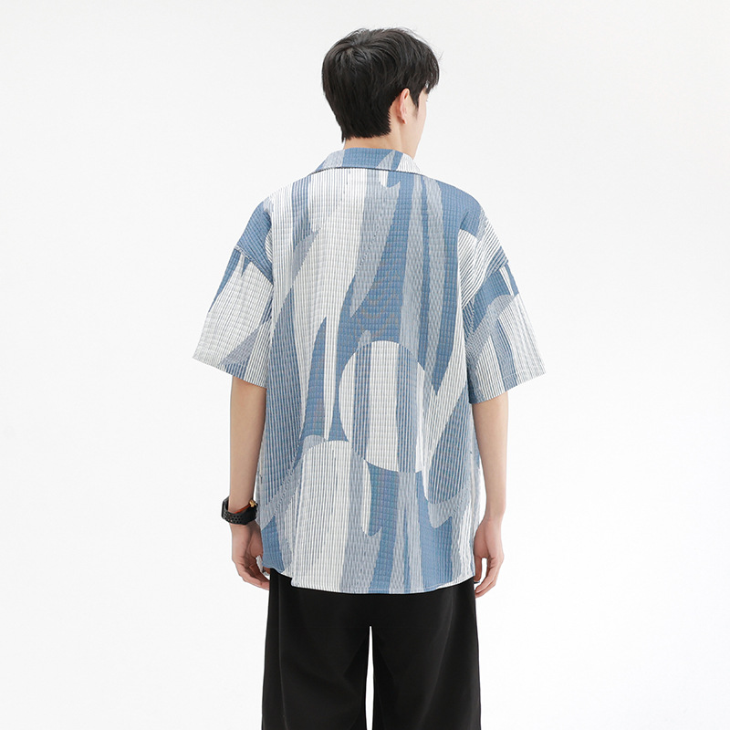 夏威夷度假沙滩夏季冰丝短袖衬衫男士花衬衣薄款潮流宽松半袖寸衫