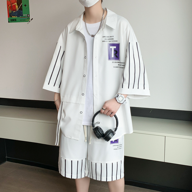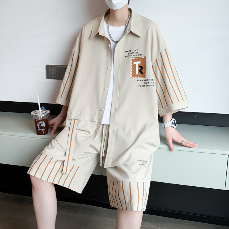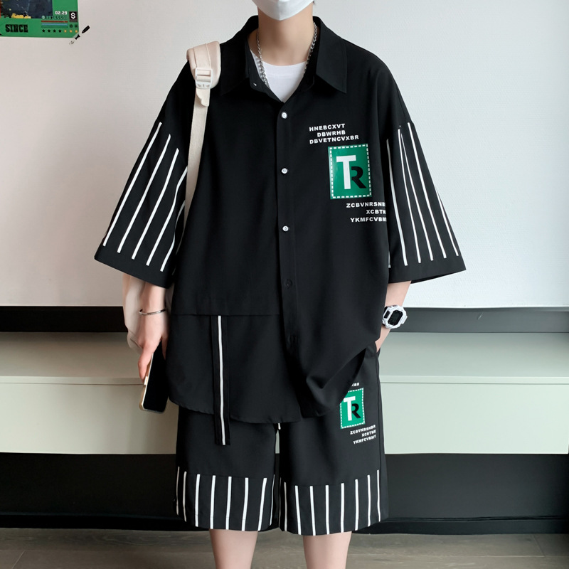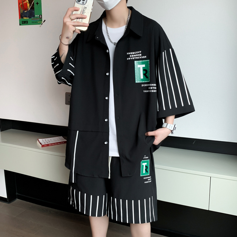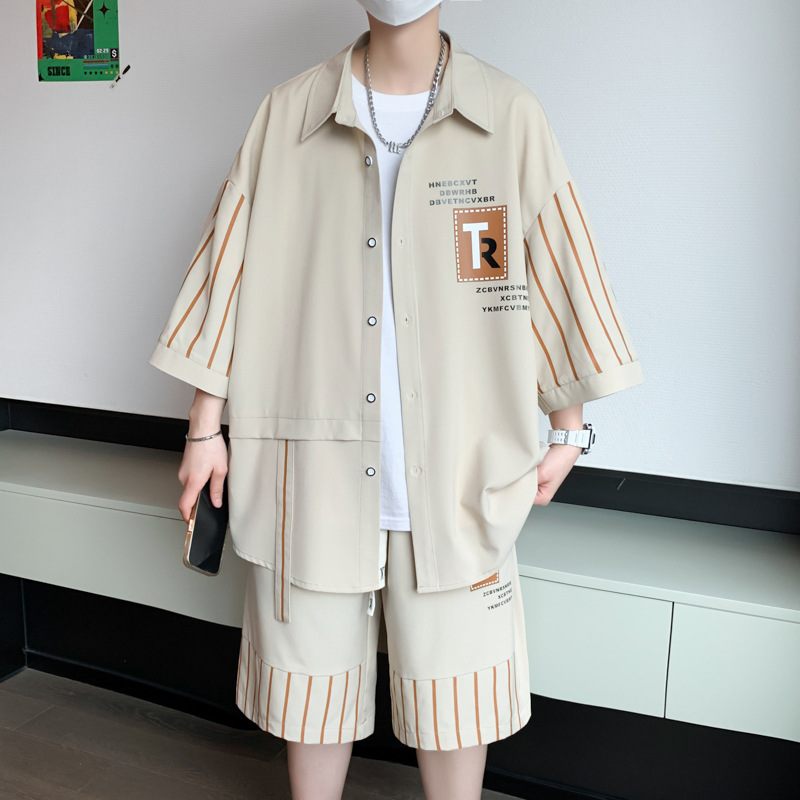 青少年潮流套装潮牌宽松休闲衬衫短裤两件套上衣短裤夏男