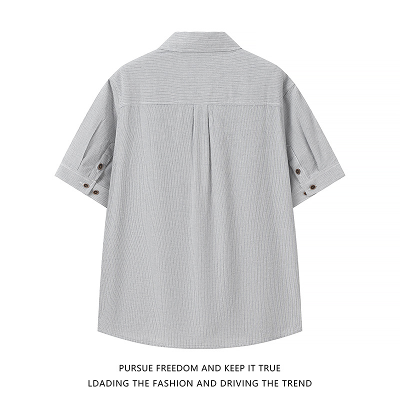 夏季新款短袖衬衫男潮牌拼接口袋小众设计潮流休闲半袖男衬衣