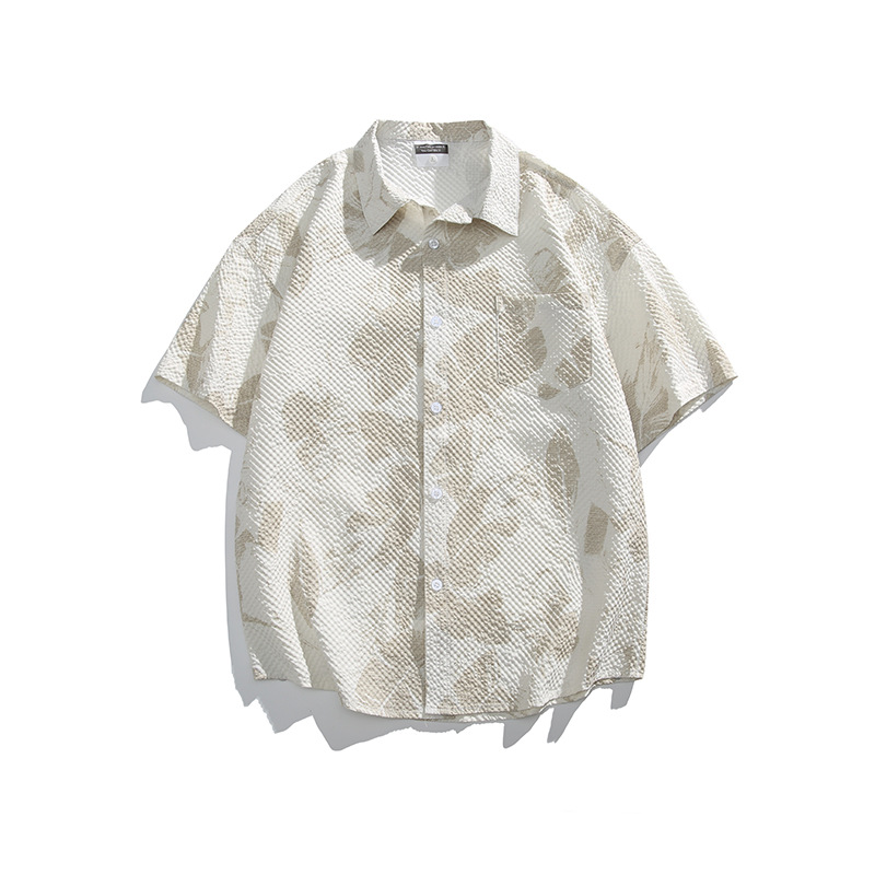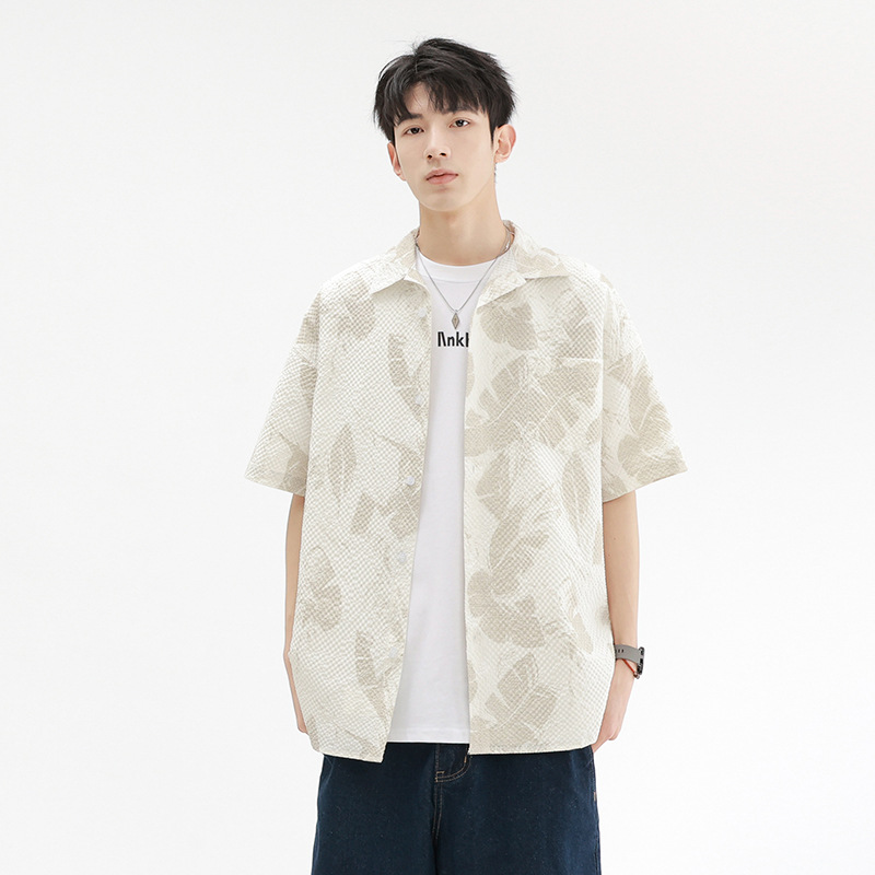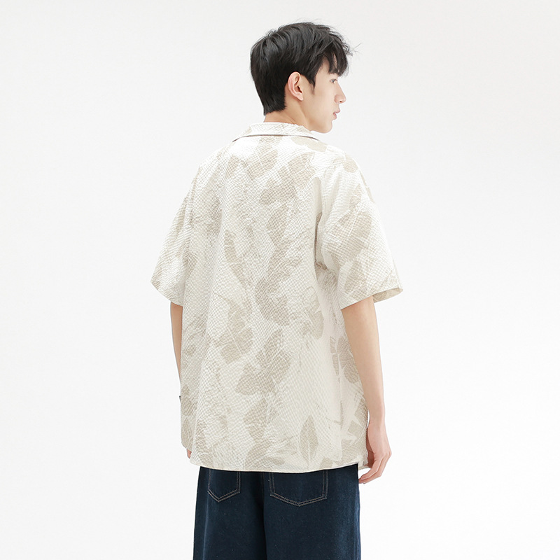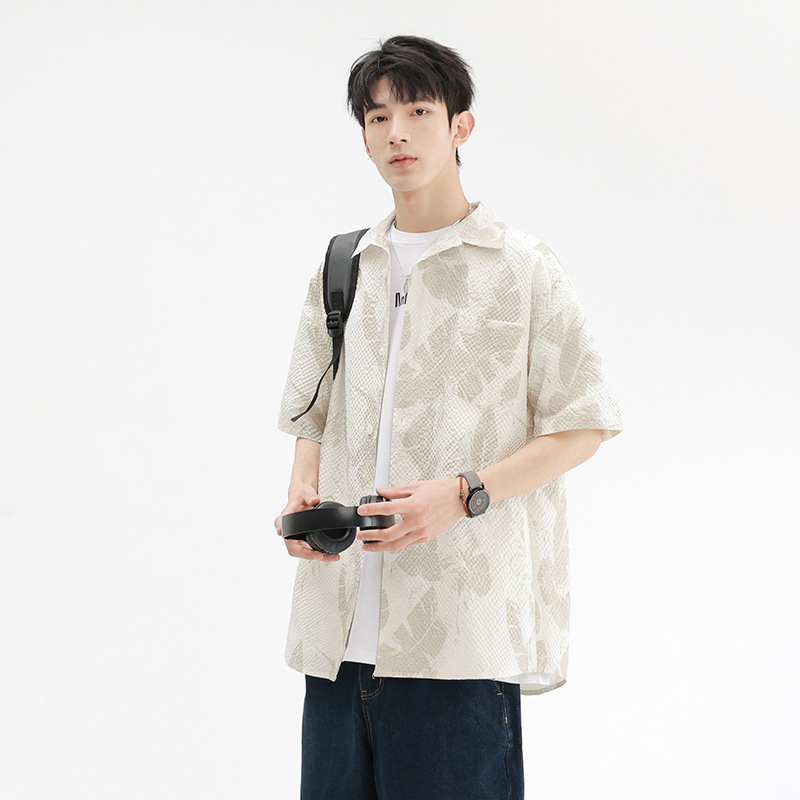 男士短袖衬衫夏季新款潮牌满印花衬衫宽松青少年休闲外套