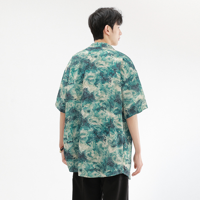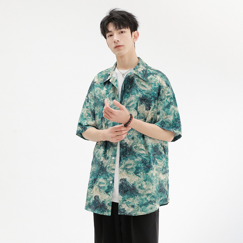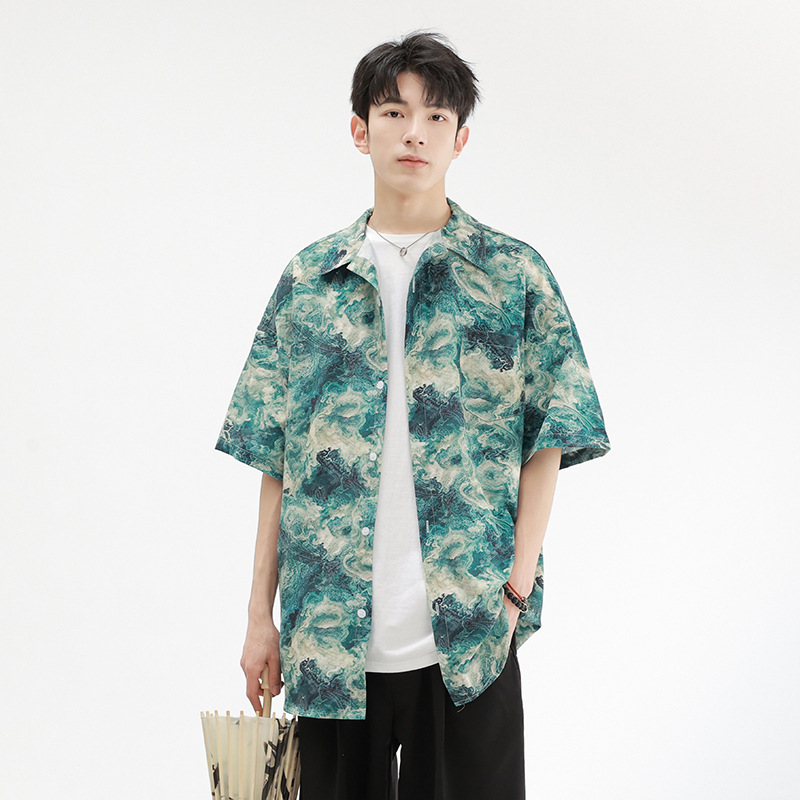 夏威夷短袖花衬衫男款夏季新衬衣男宽松透气外套