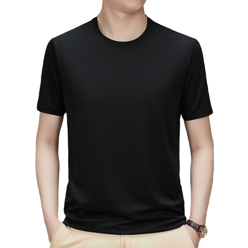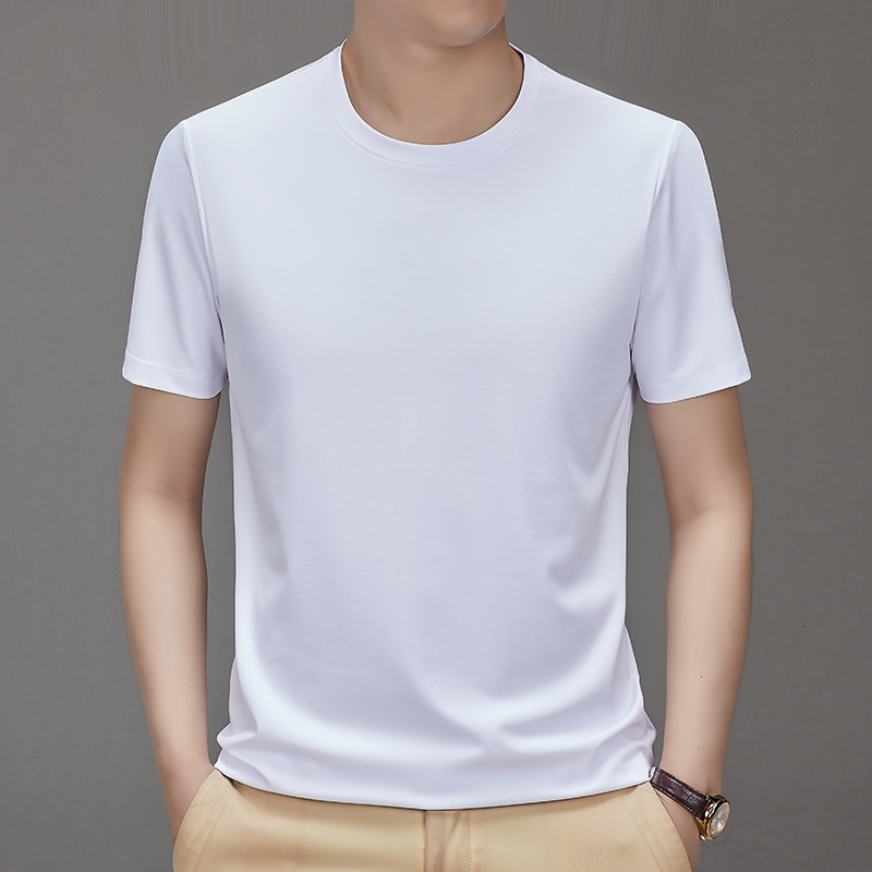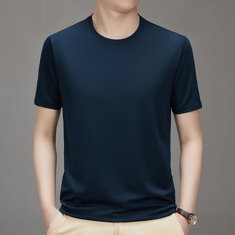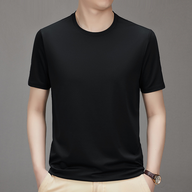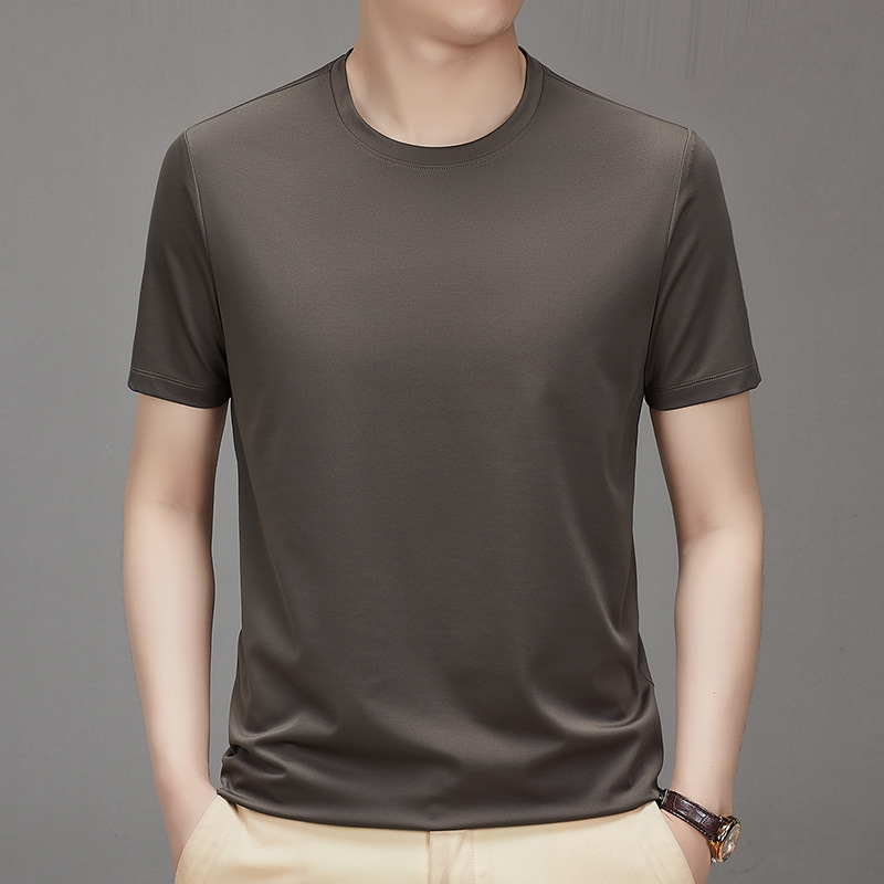 【桑蚕丝+氨纶】男士凉感顺滑圆领短袖抗菌百搭纯色T恤潮牌设计感