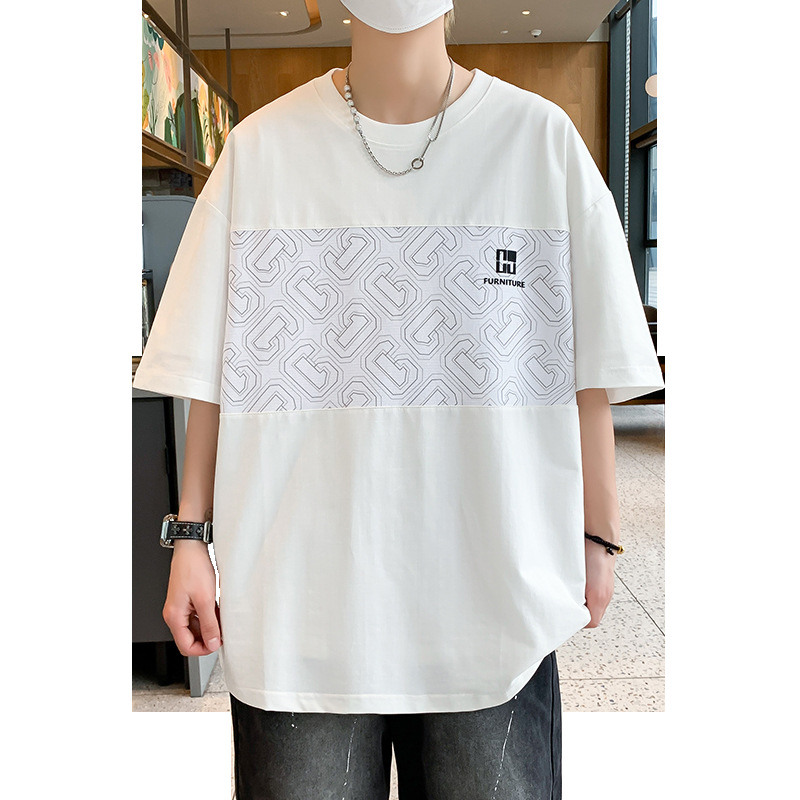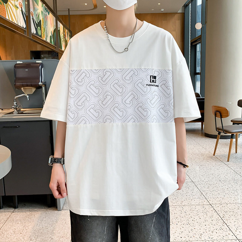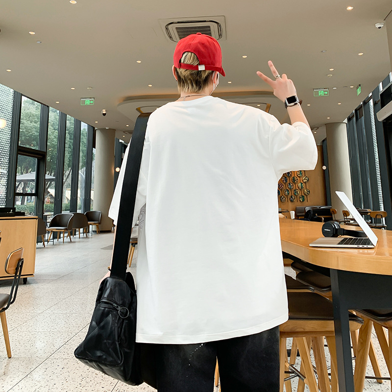 夏季新款男装圆领休闲T恤宽松短袖打底衫青少年港风帅气潮流