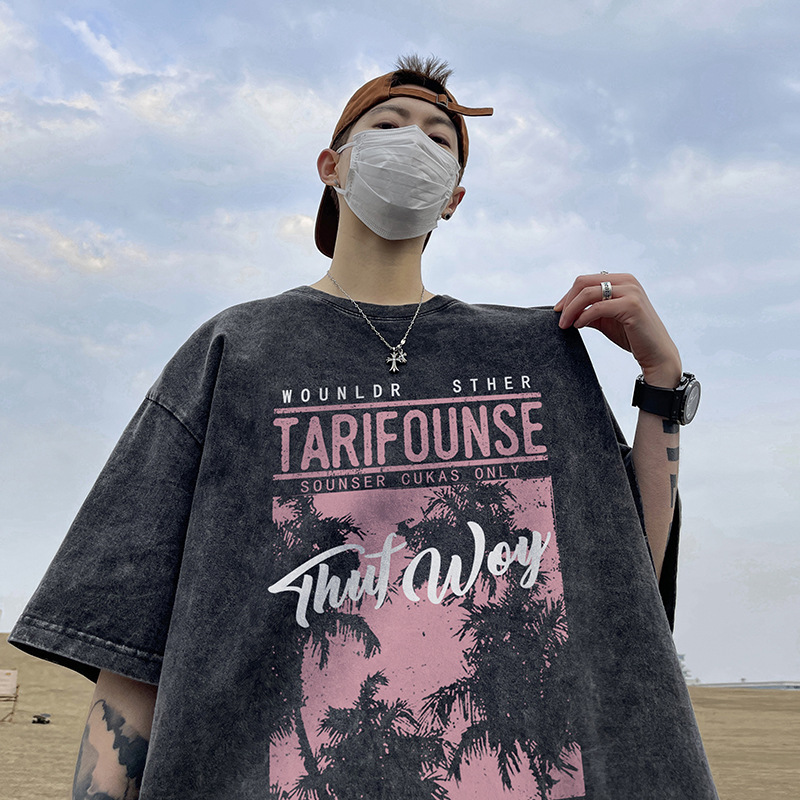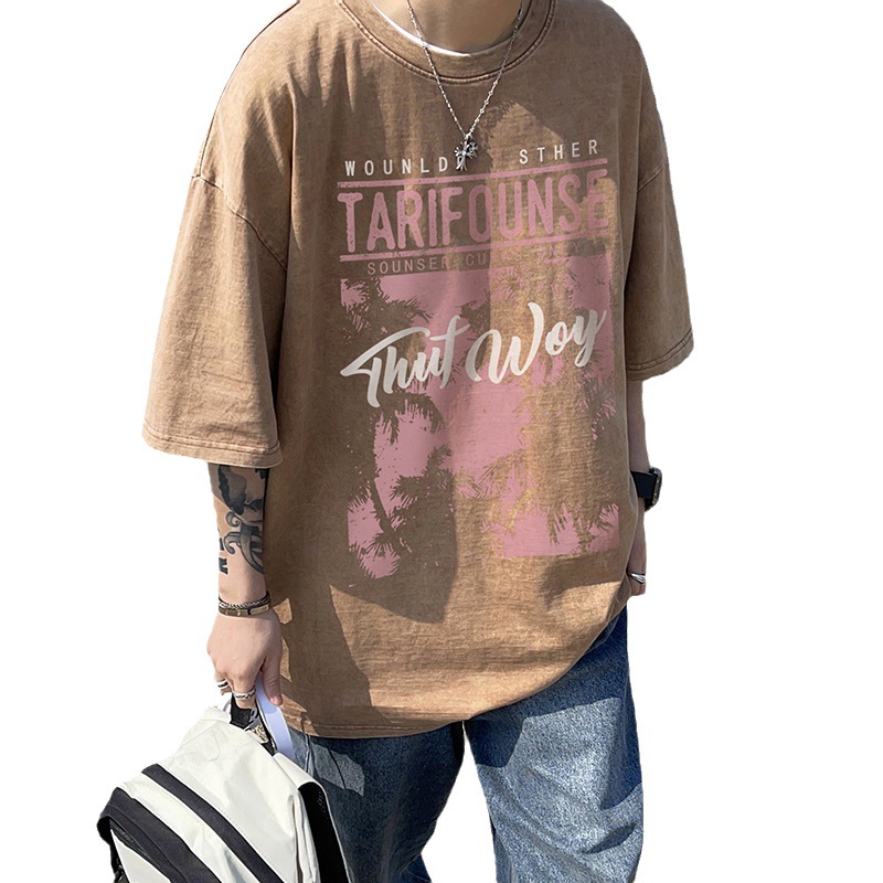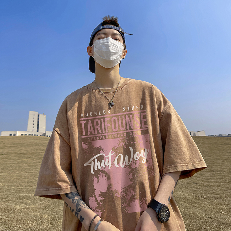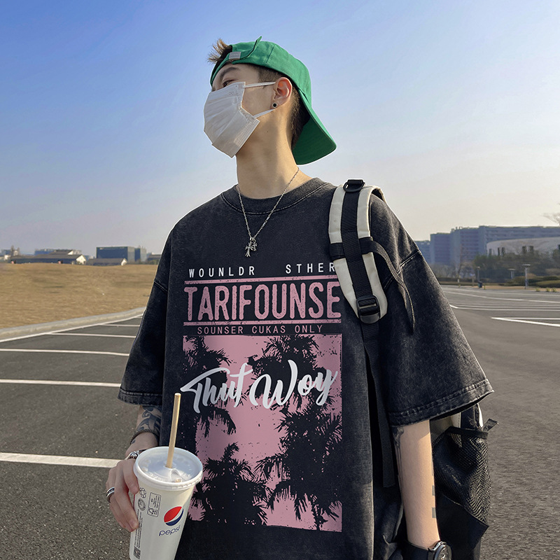 男生短袖ins潮牌t恤美式上衣夏季宽松半袖男士体恤港风青少年