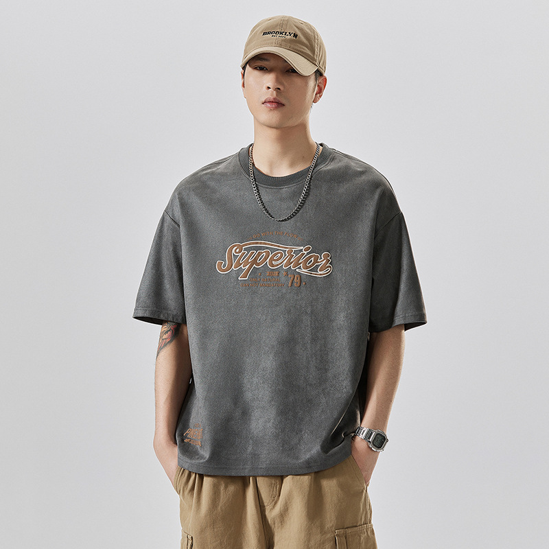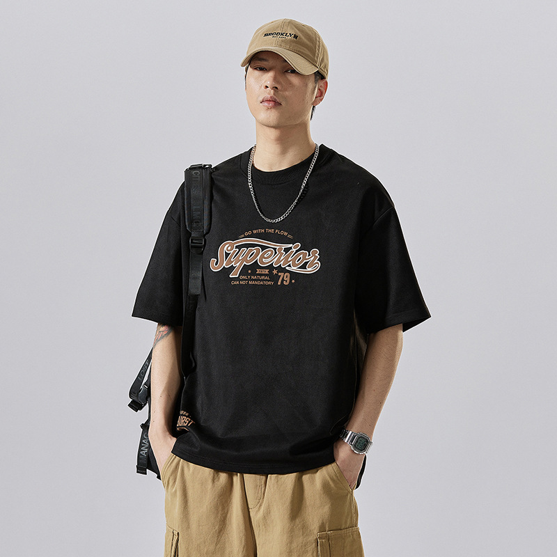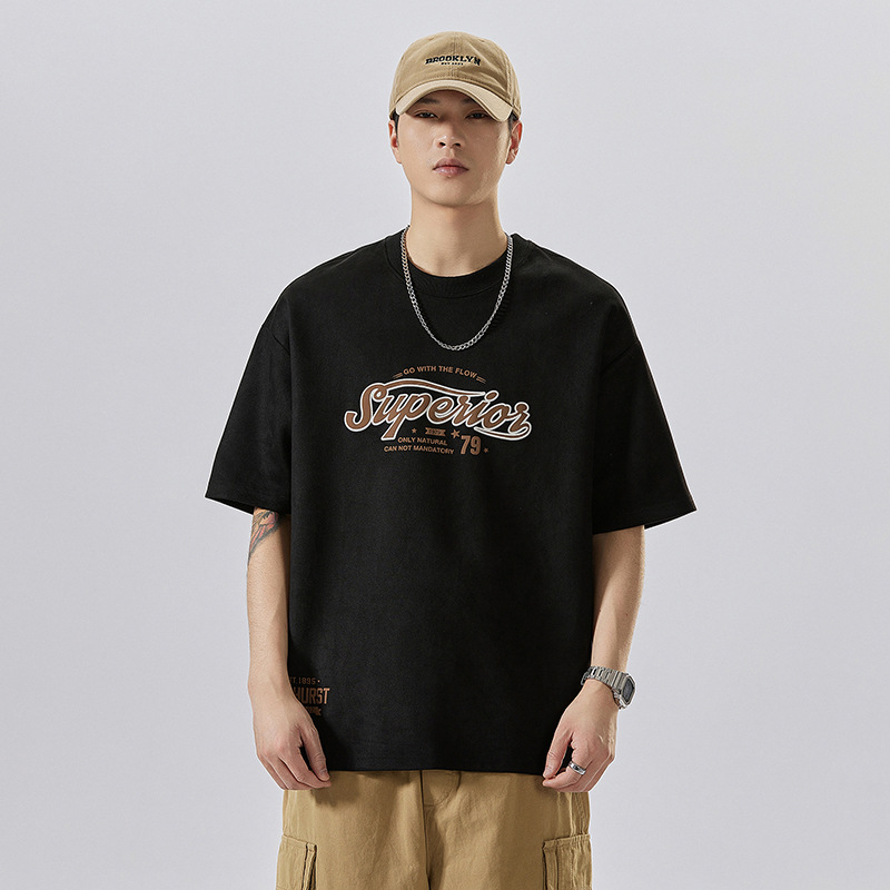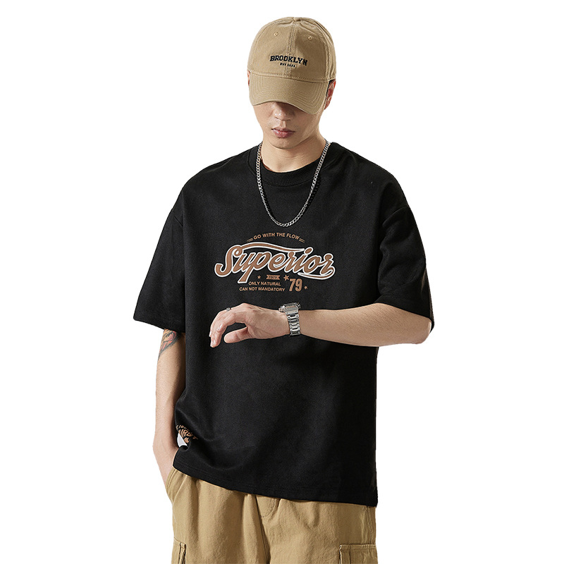 t恤男夏季美式高街潮牌圆领上衣男夏季新款宽松休闲黑色短袖