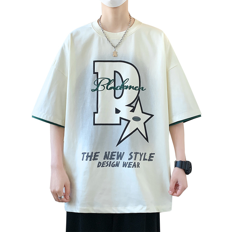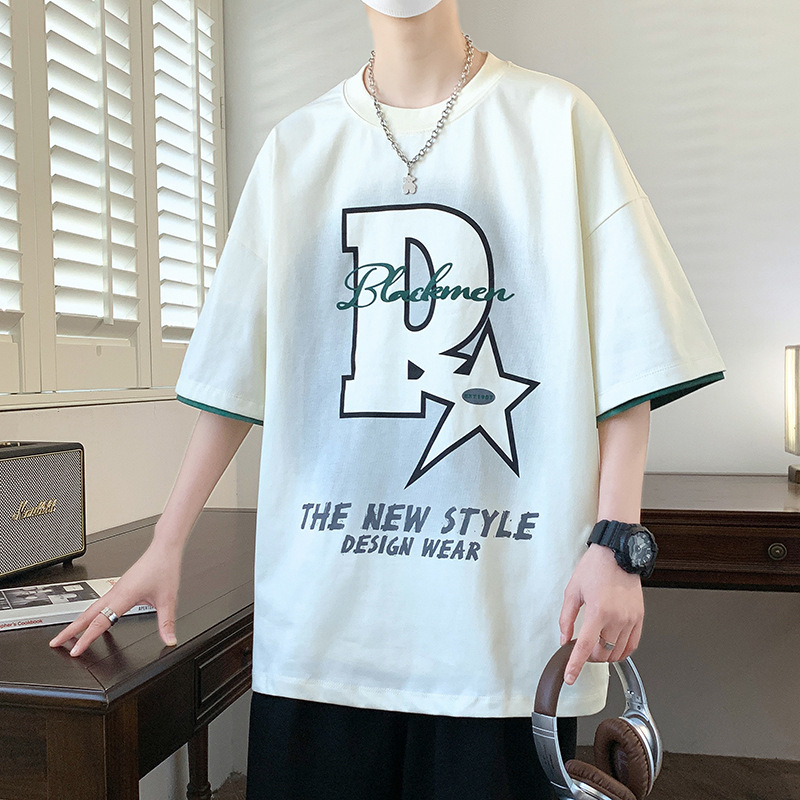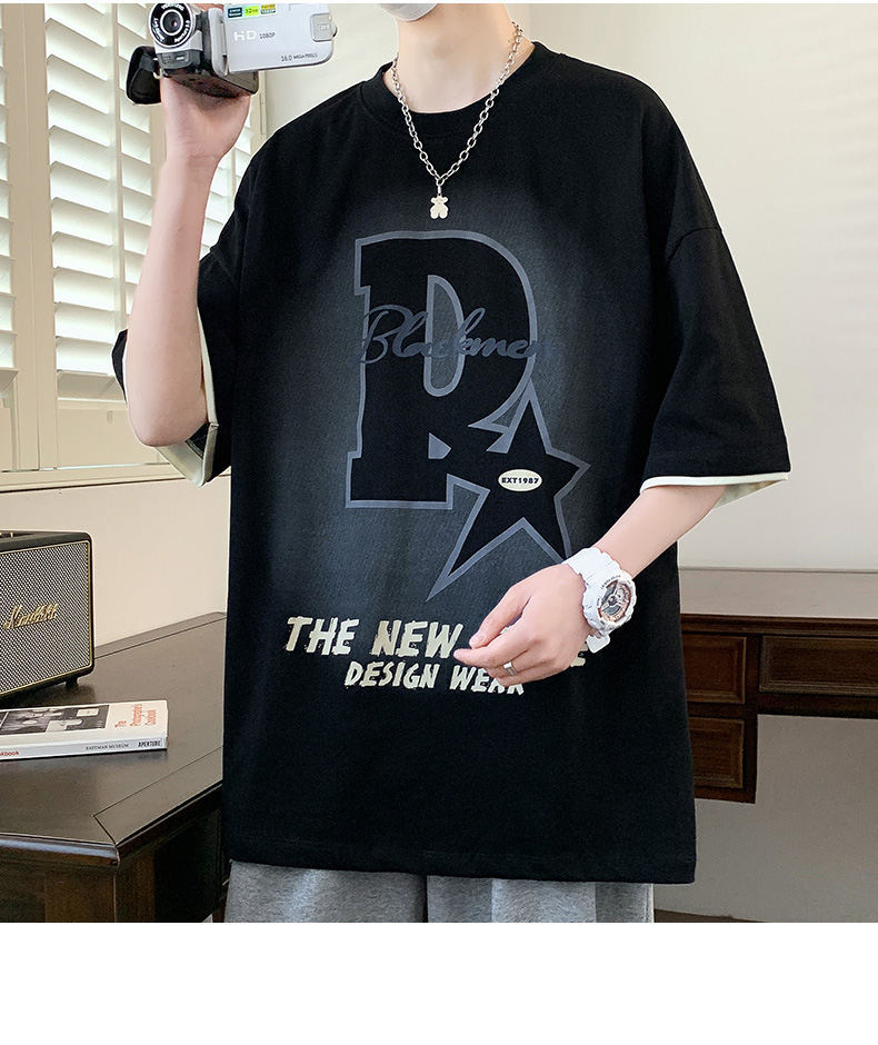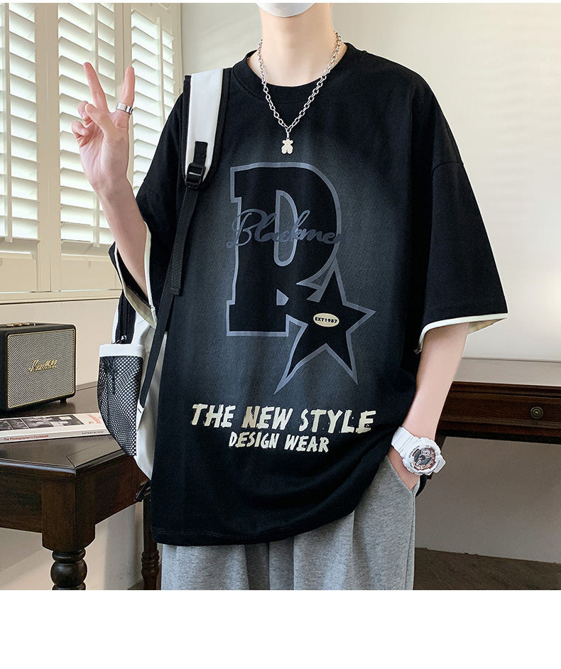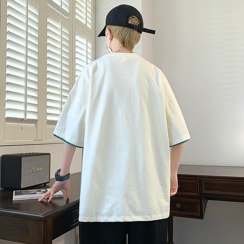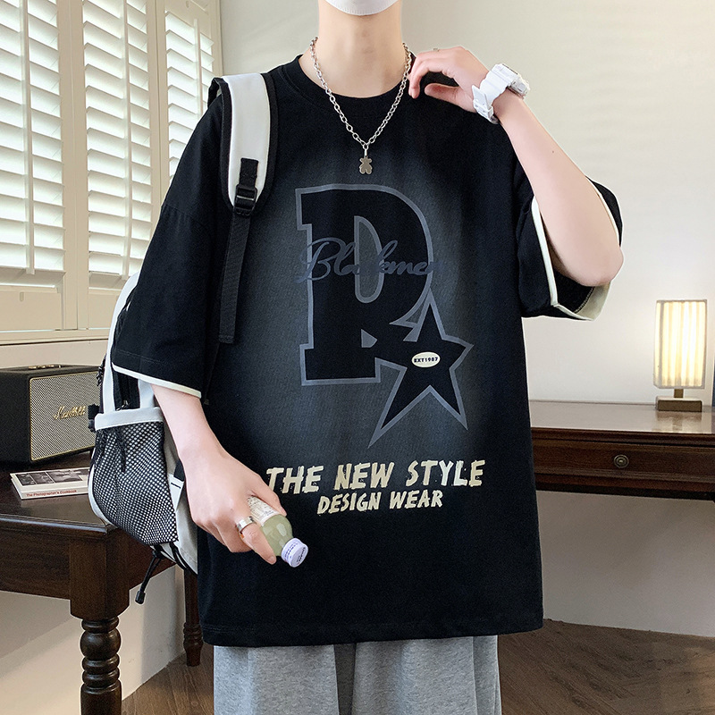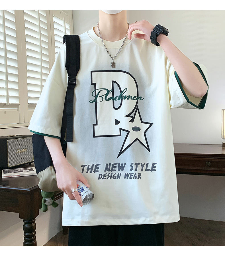 夏季男士五分袖/中袖棉恤潮流港风风恤初高中学生宽松型圆领