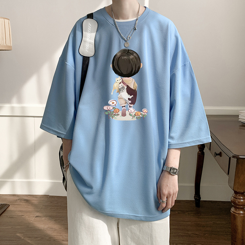 重磅纯棉印花短袖男夏季宽松潮流美式男生半袖T恤时尚青少年潮流