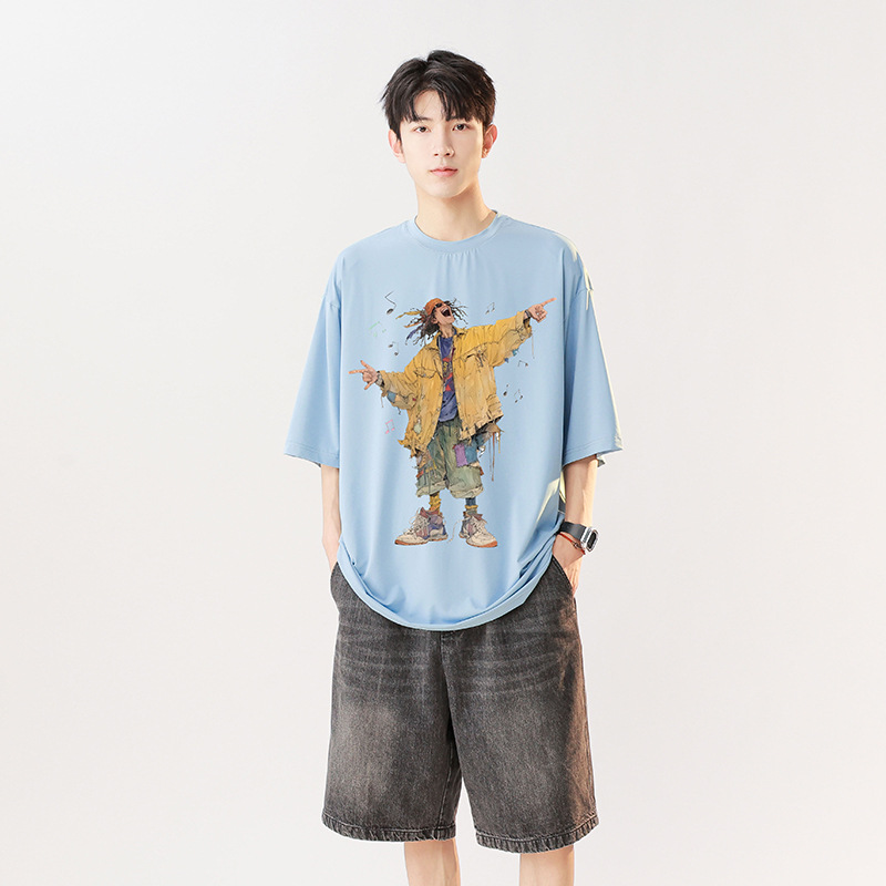 美式休闲爆款速干t恤印花小丑短袖T恤夏季圆领男女宽松潮牌上衣帅