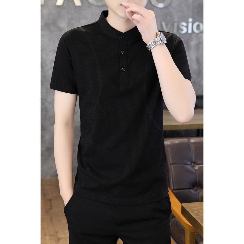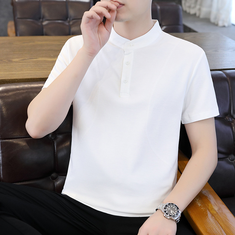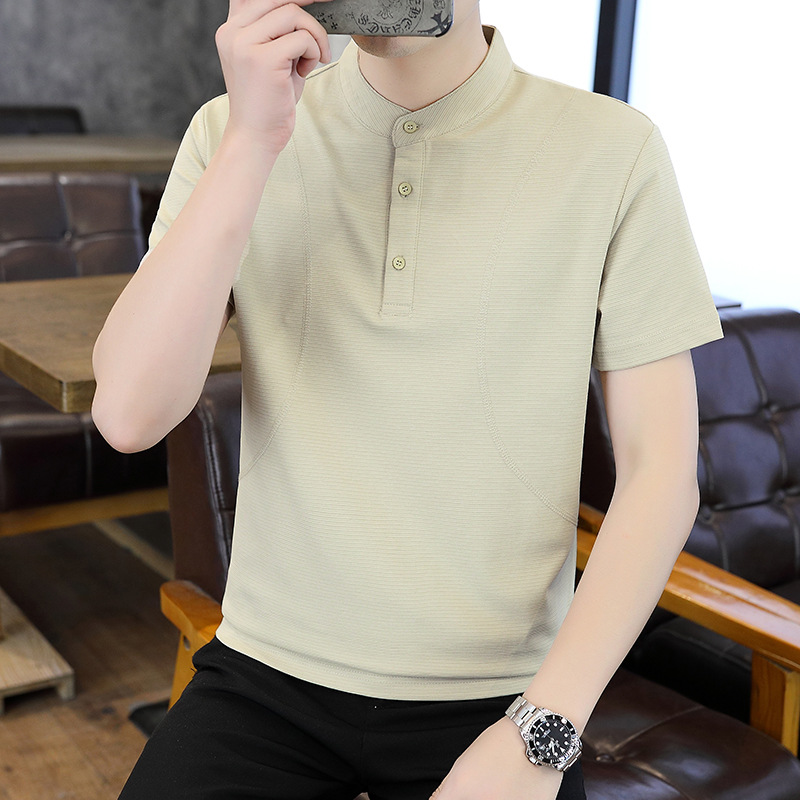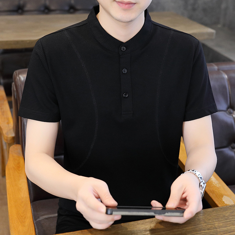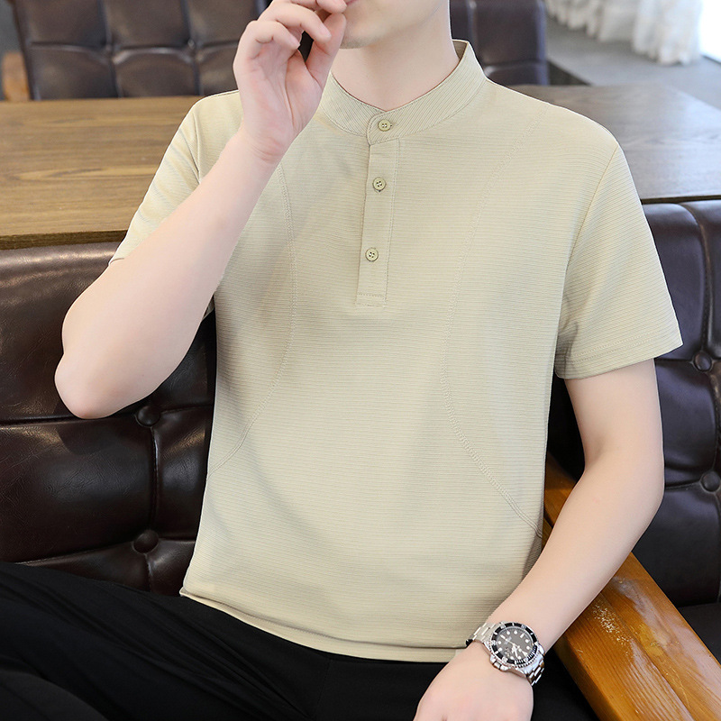 中国风古巴领三粒扣短袖T恤夏季新款中青年休闲短袖休闲T恤潮