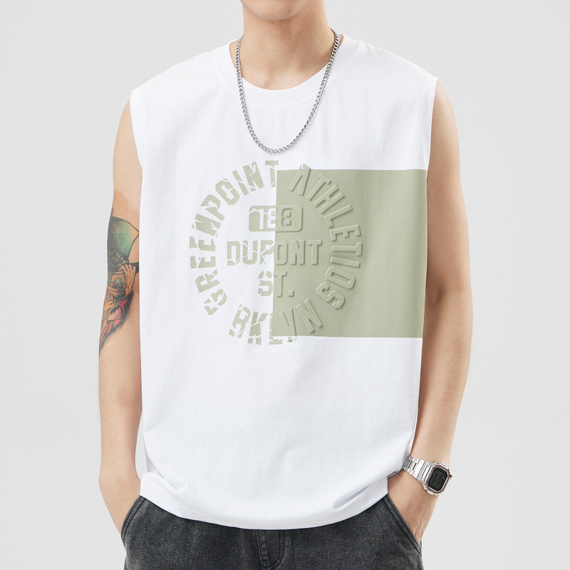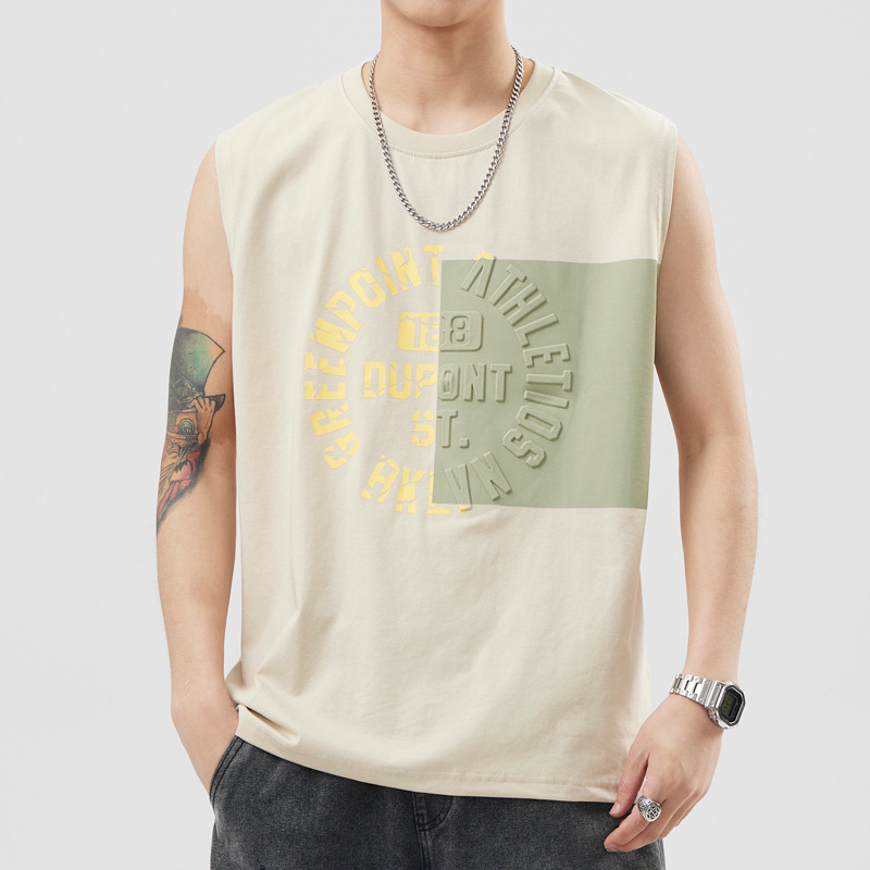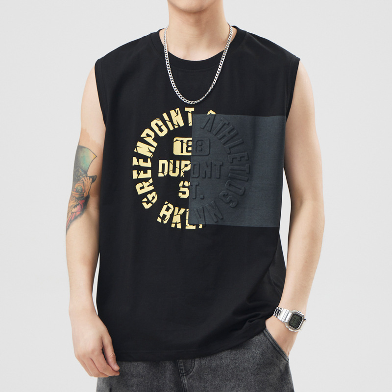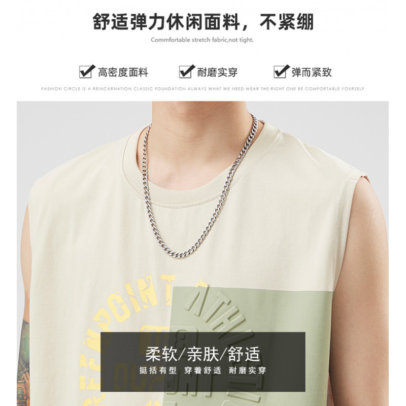 重磅钢印无袖T恤夏季新款男款简约背心潮流时尚百搭上衣
