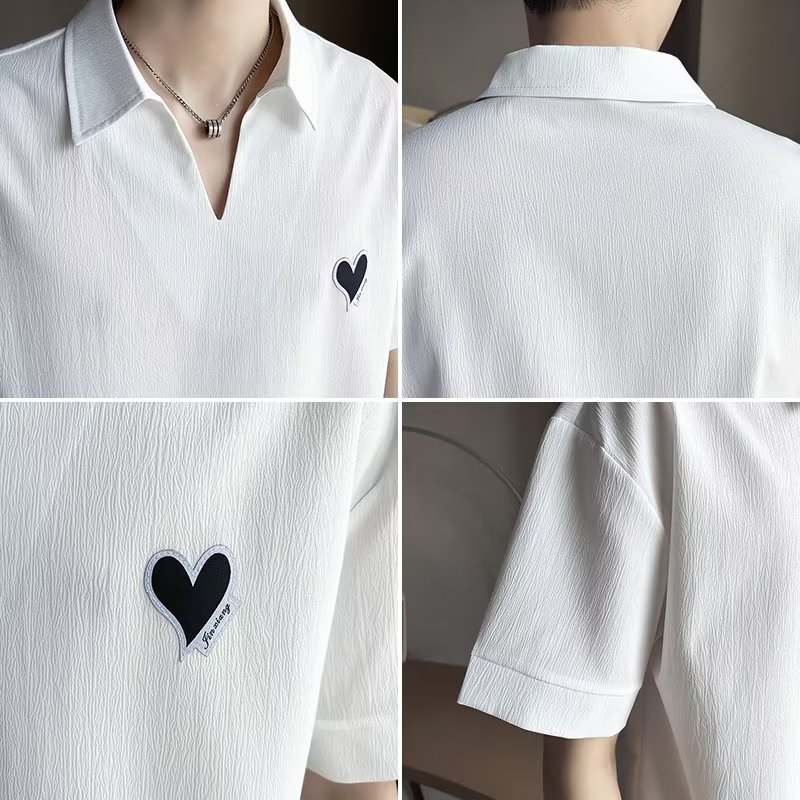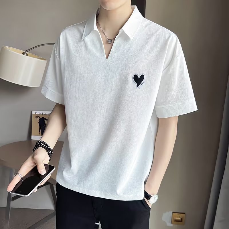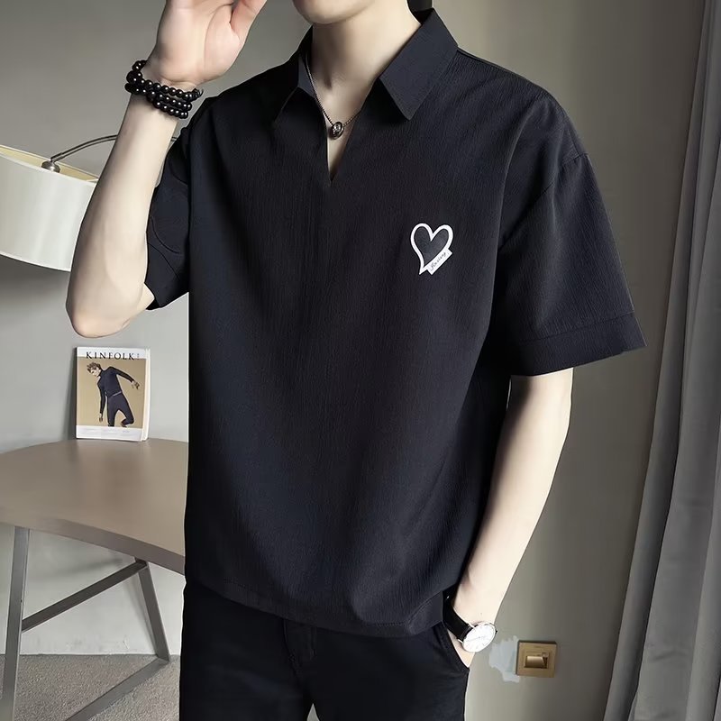 冰丝T恤男V领短袖夏季男士翻领POLO衫ins潮牌半袖新款半截袖t