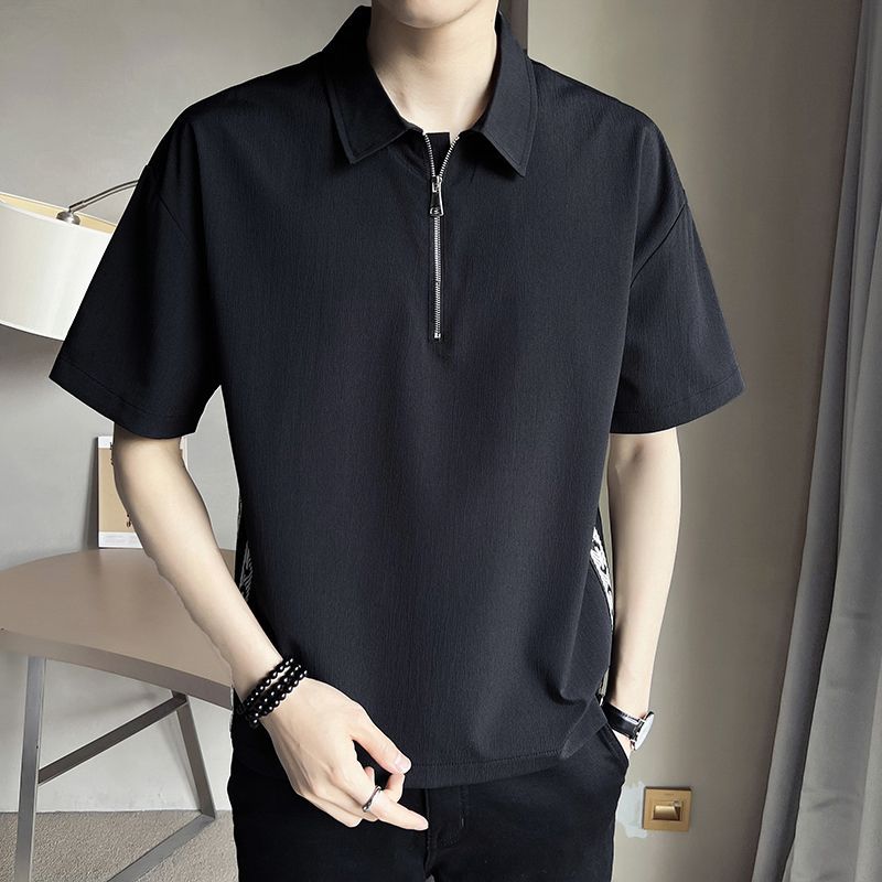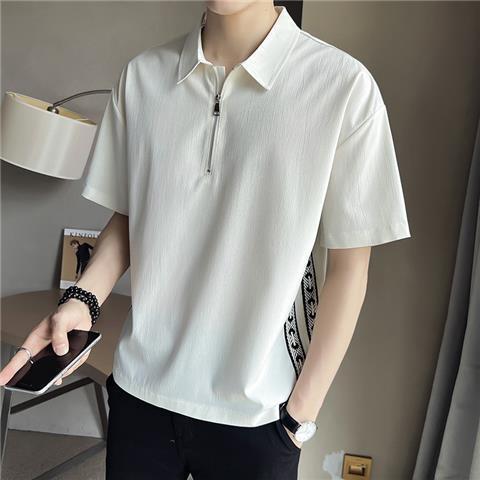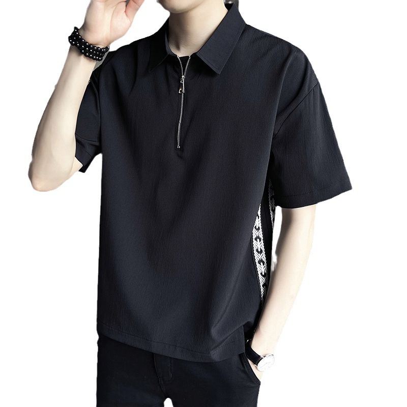 带拉链男士短袖T恤网红同款休闲痞帅夏季新款织带上衣半袖polo衫