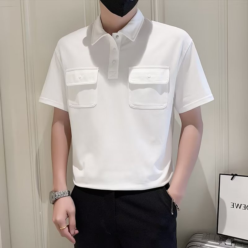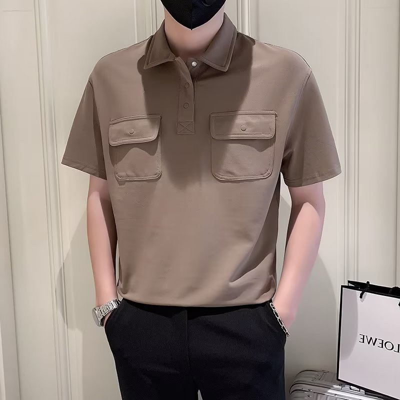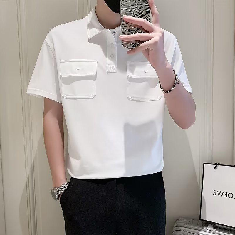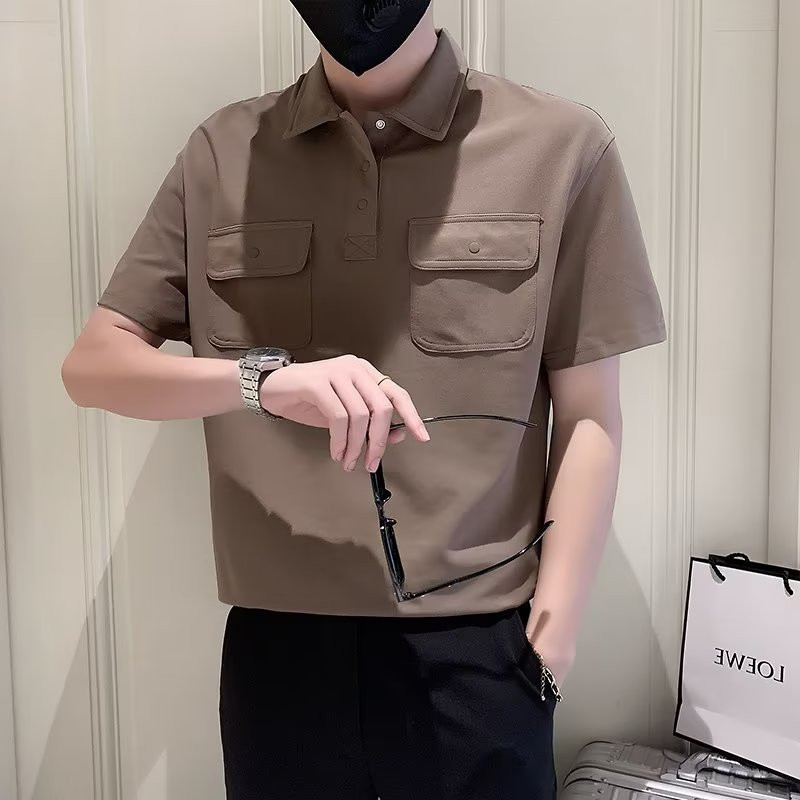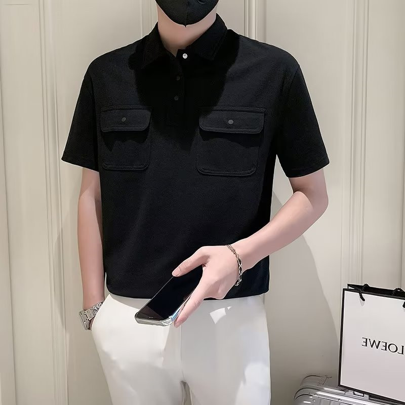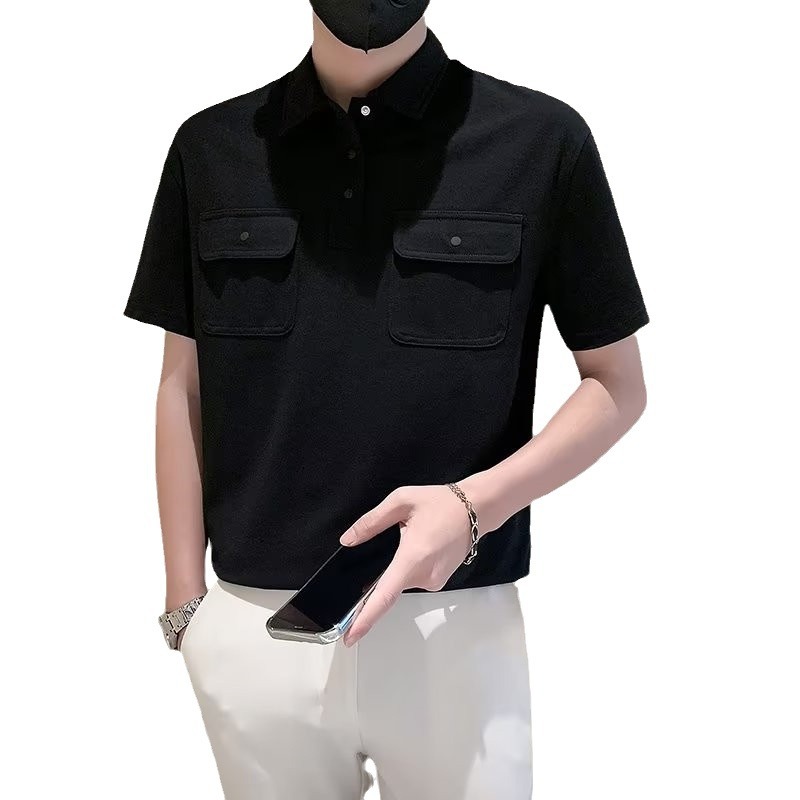 夏季短袖t恤新款polo衫男翻领纯色宽松休闲高级感美式袖潮牌