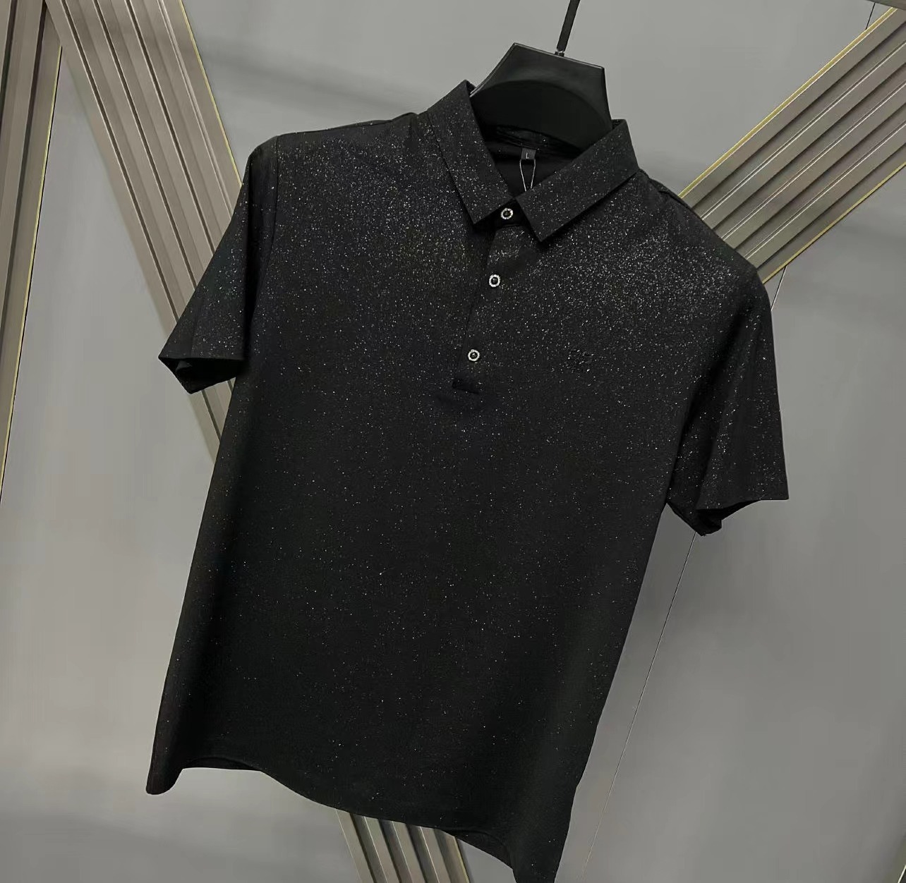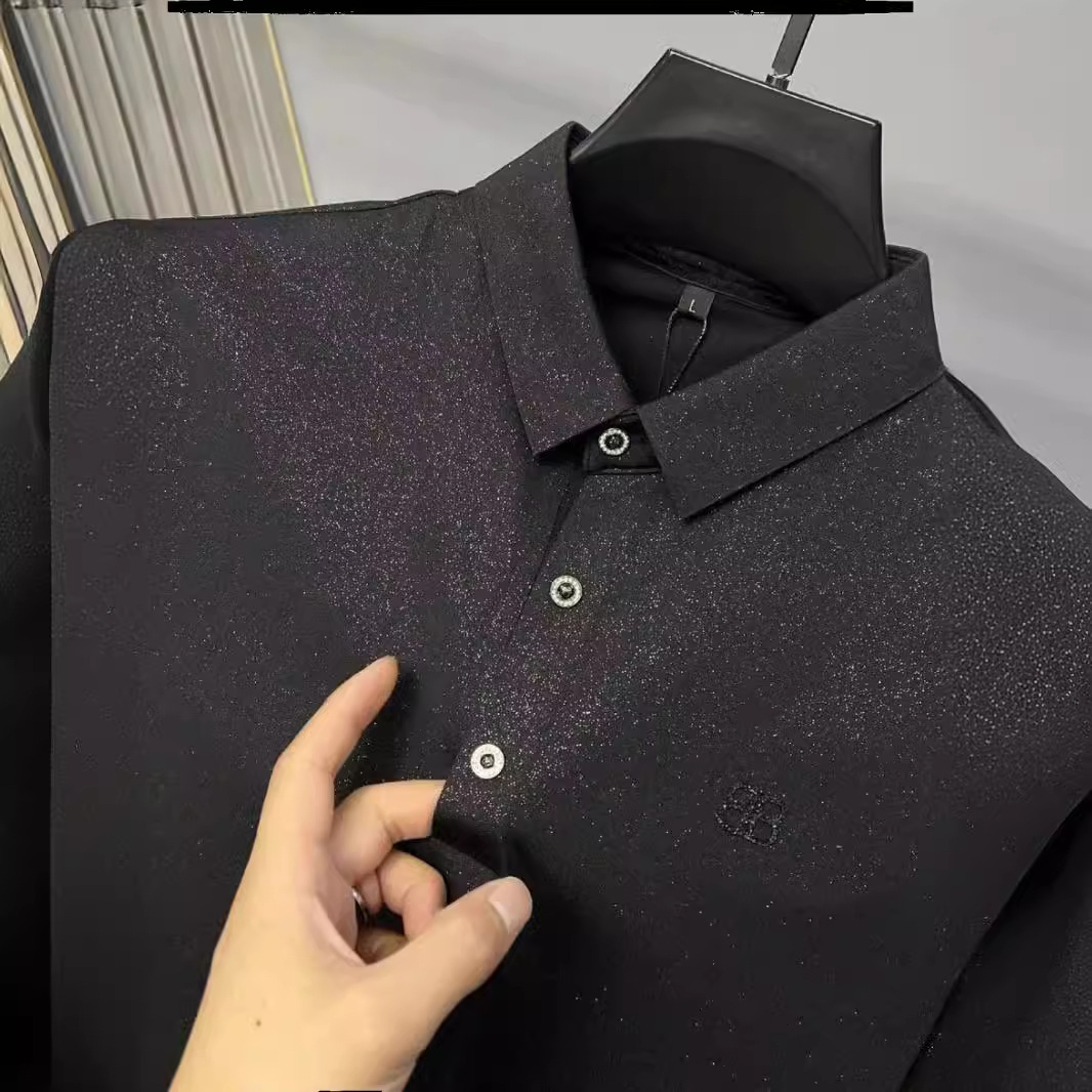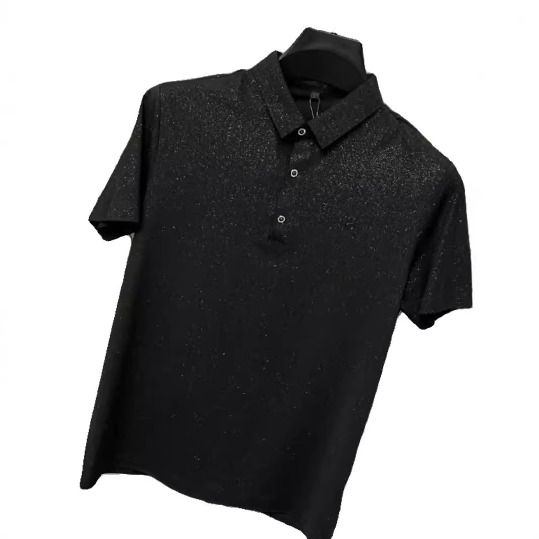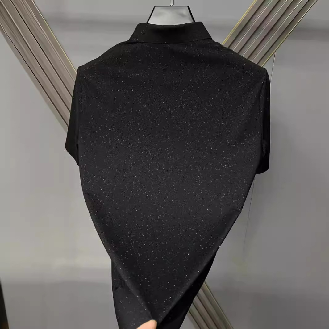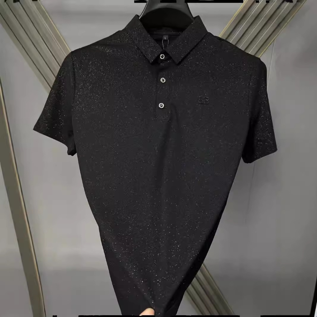 男士夏季新款轻奢休闲欧货韩版修身翻领黑色百搭满天星短袖POLO衫
