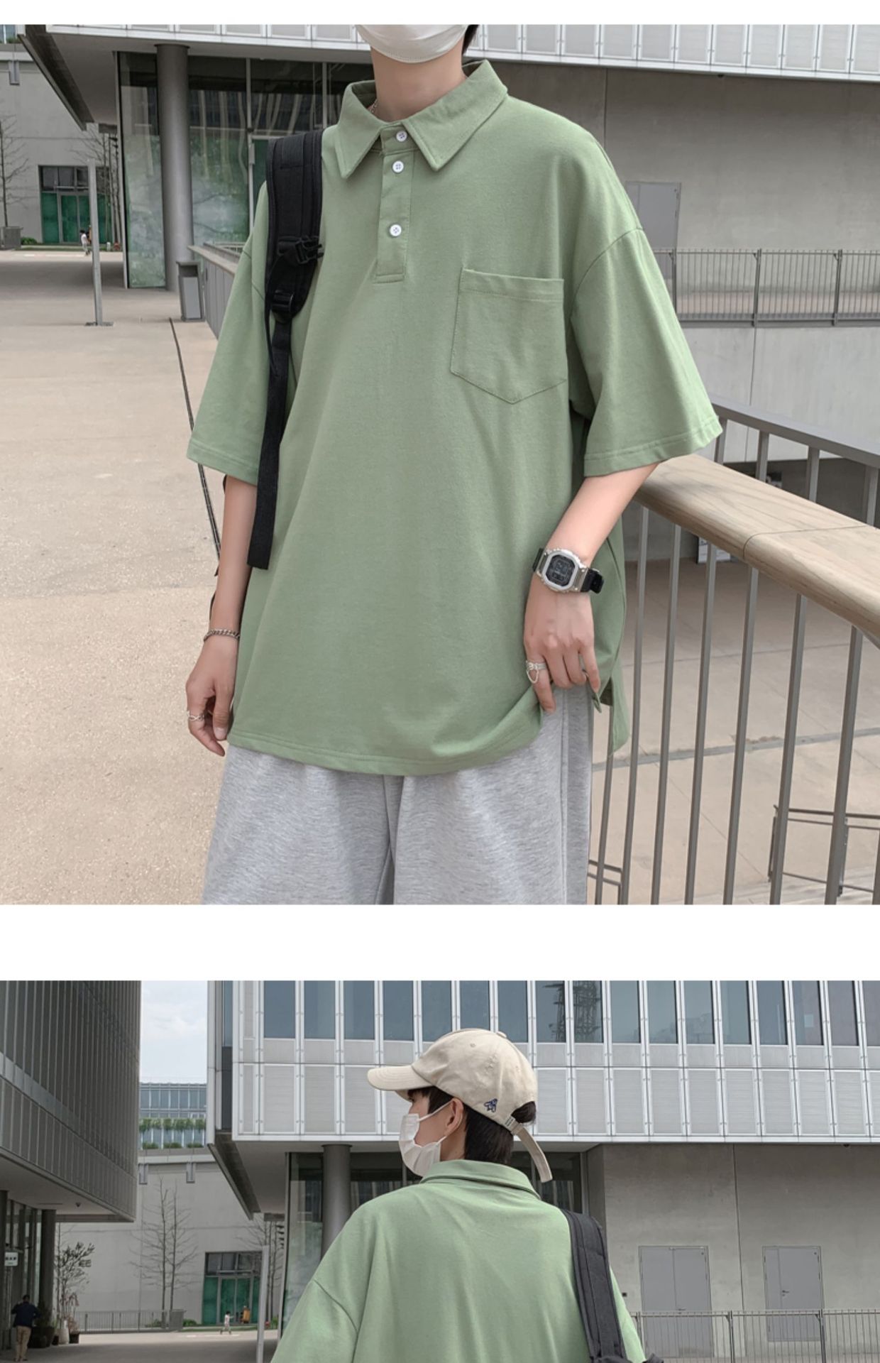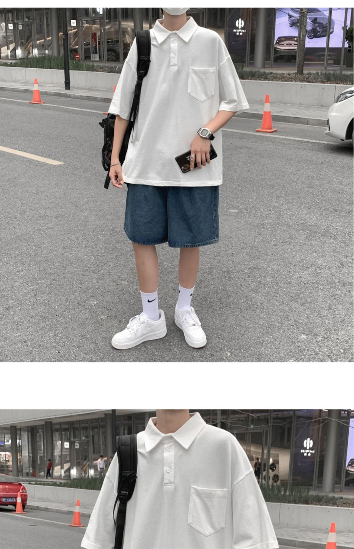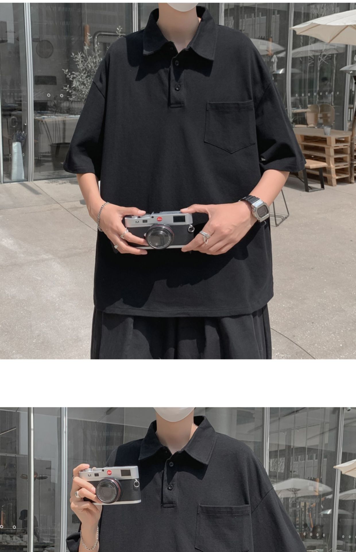 夏季INS港风纯色短袖polo衫男女潮流休闲打底情侣翻领体恤衫上衣