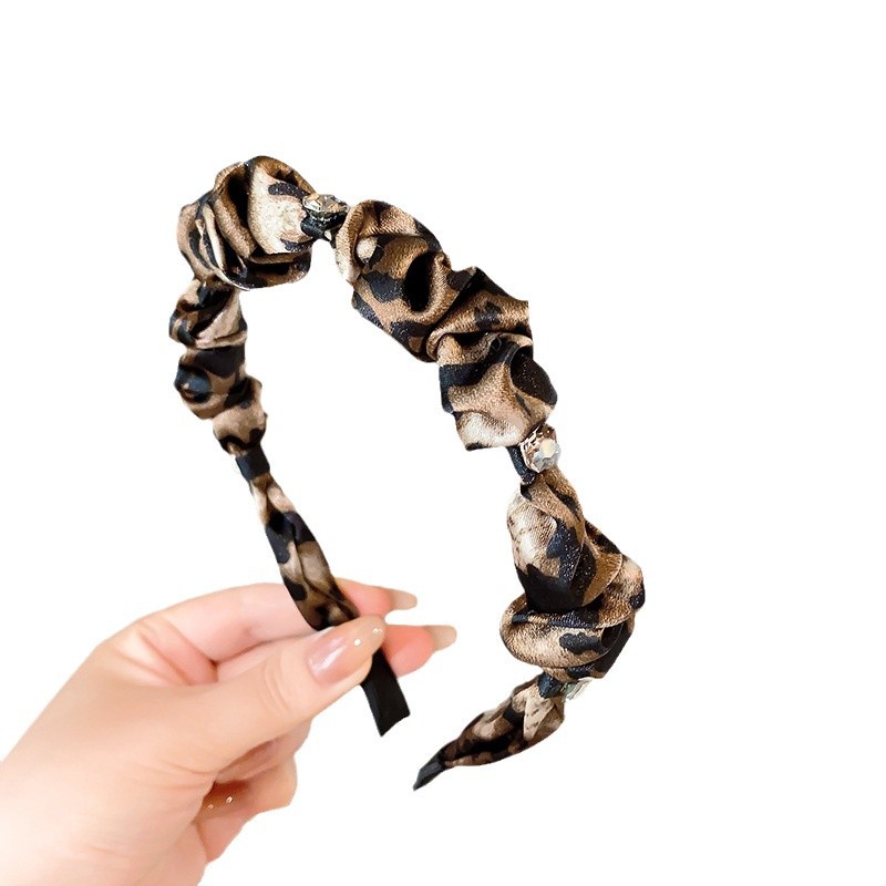 韩系新款豹纹水晶发箍褶皱宽边头箍高颅顶头饰洗脸束发防滑发捆女