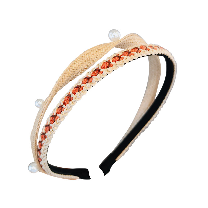 复古名族风编织细边双层珍珠发箍女新款高级感头箍压发发卡