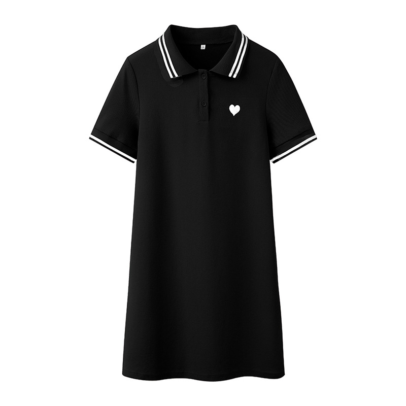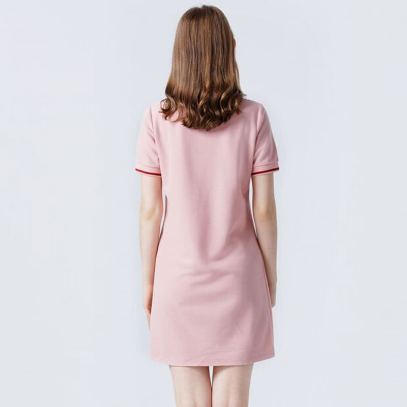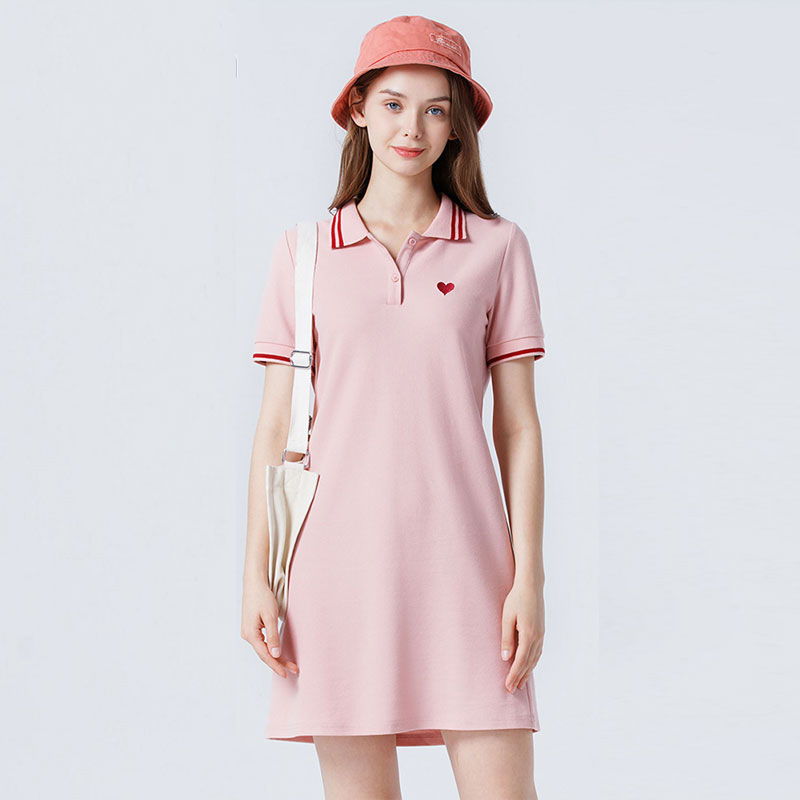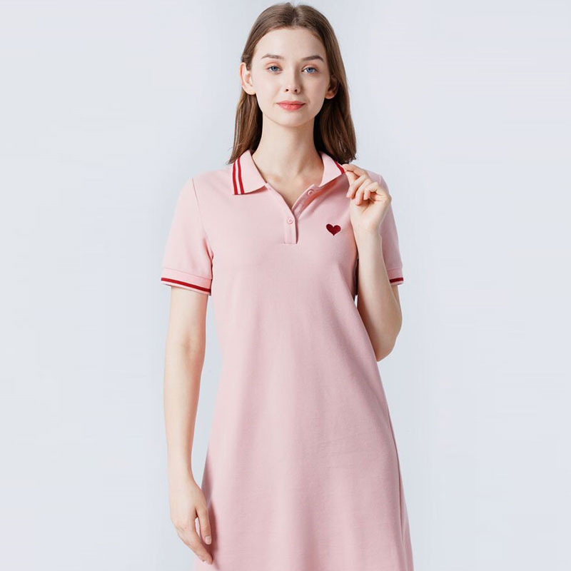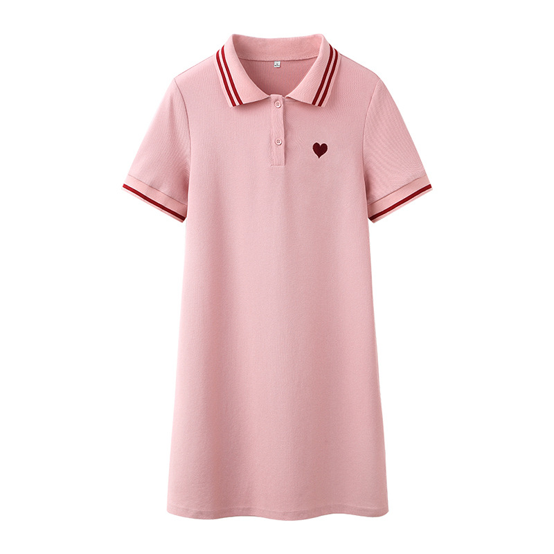 纯棉polo连衣裙夏季年新款休闲中长款粉色领衫短袖t恤裙子女