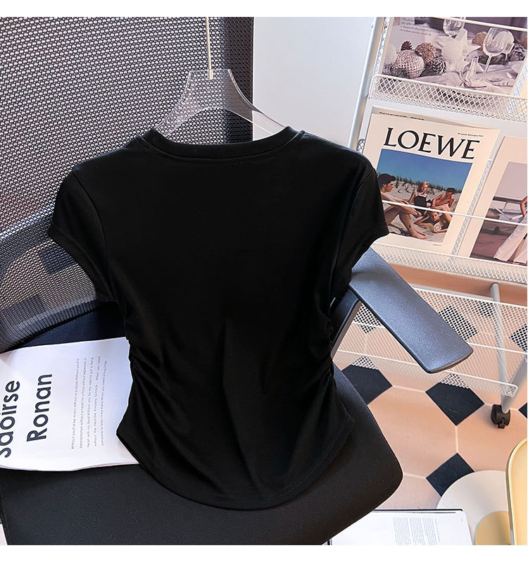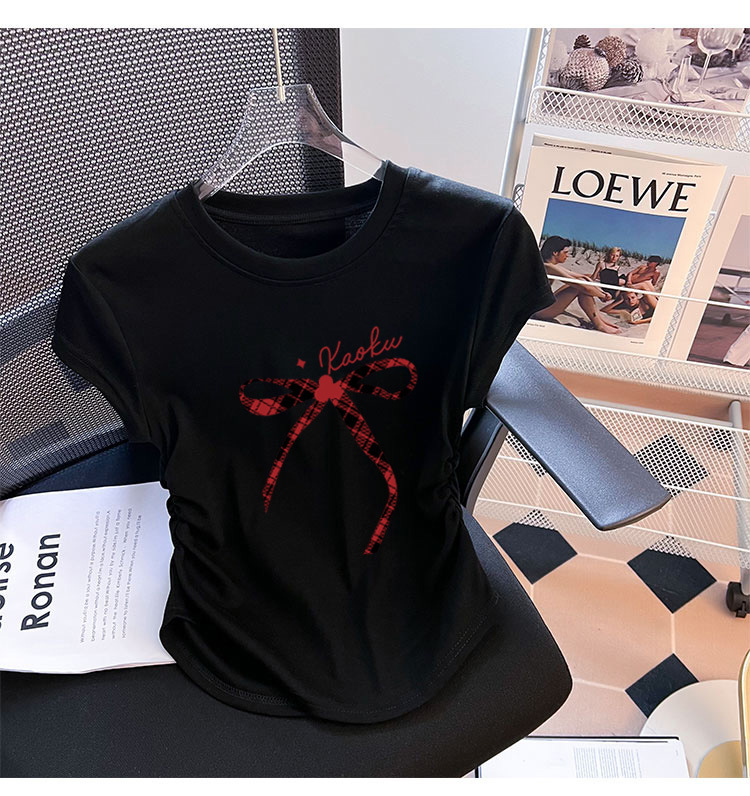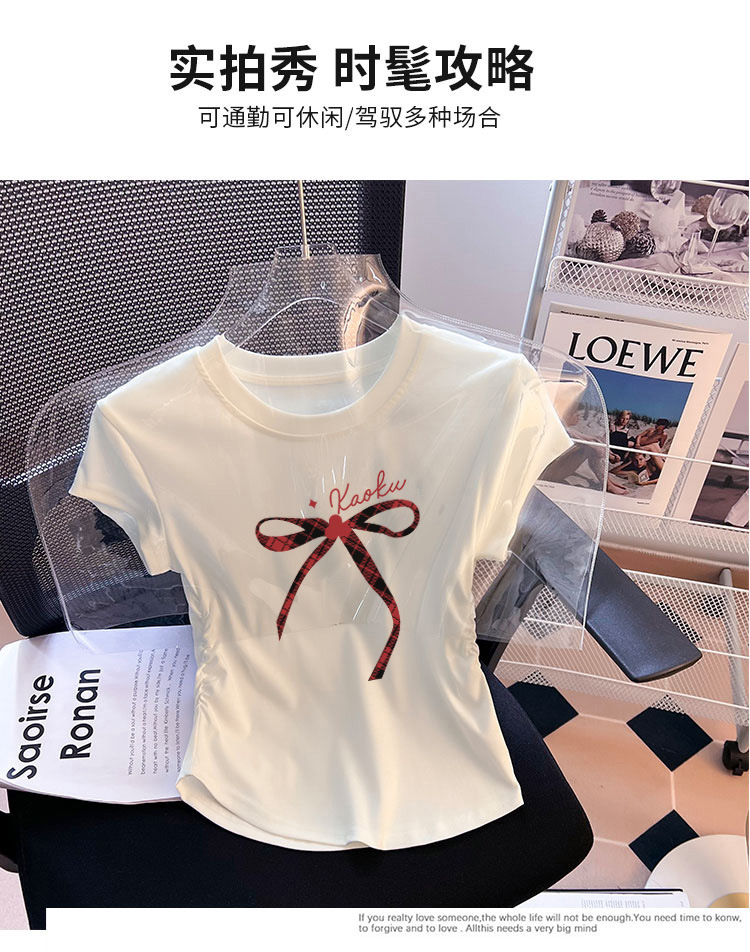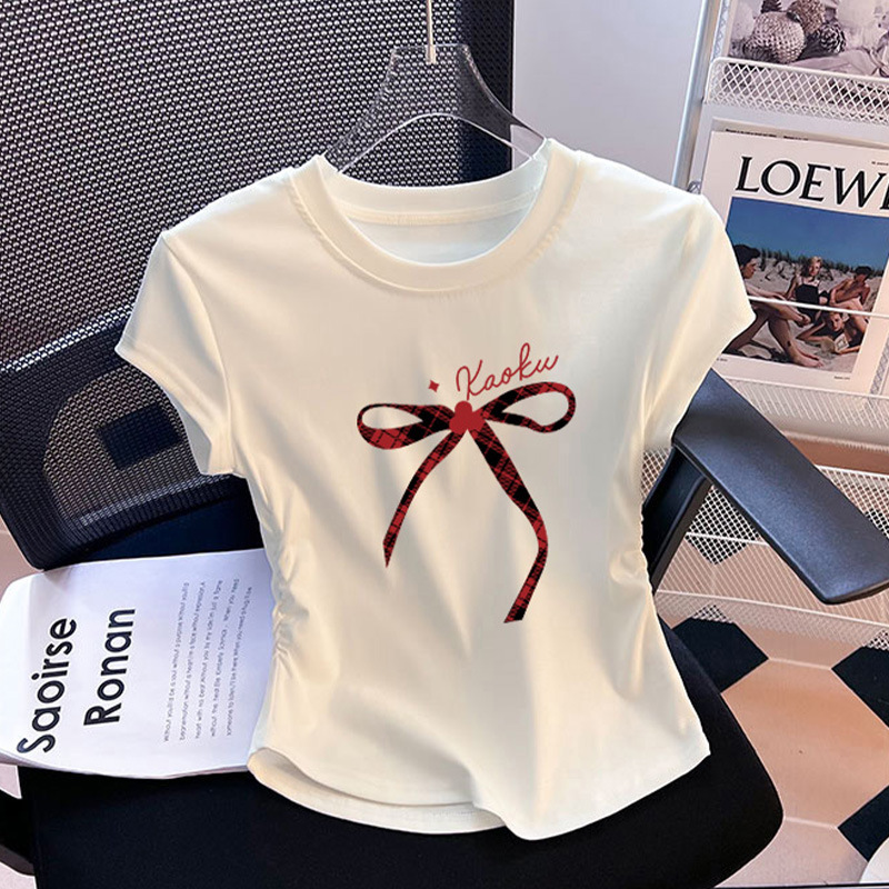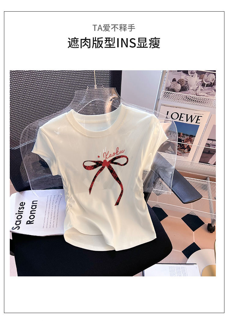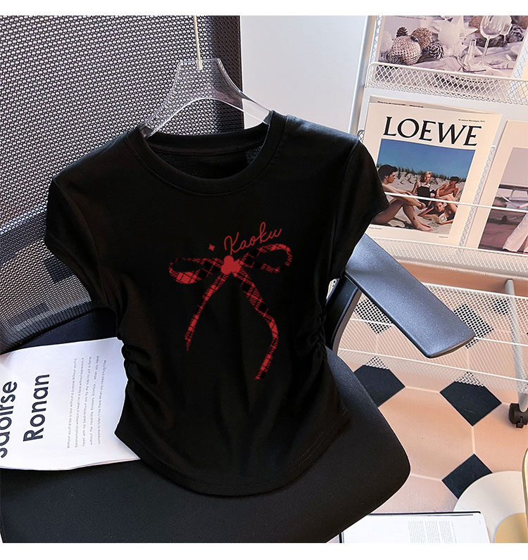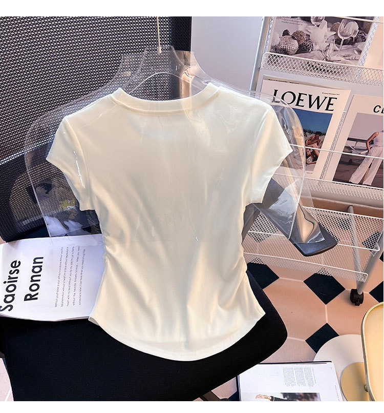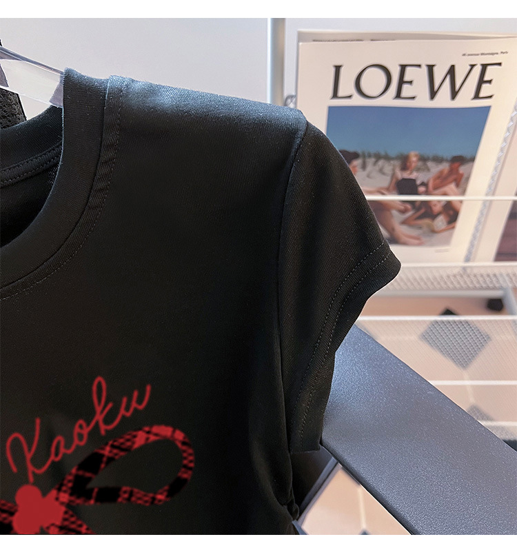 纯棉短款短袖t恤女夏季新款设计感别致小个子修身正肩上衣潮
