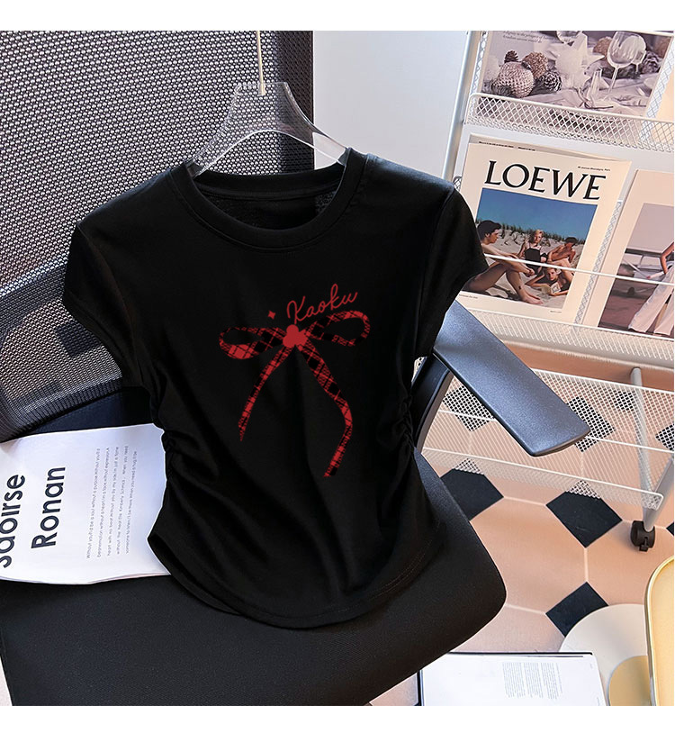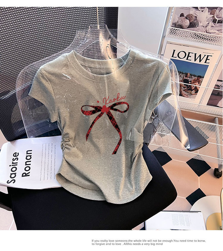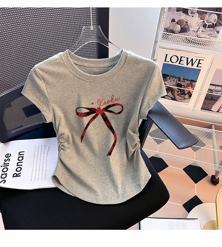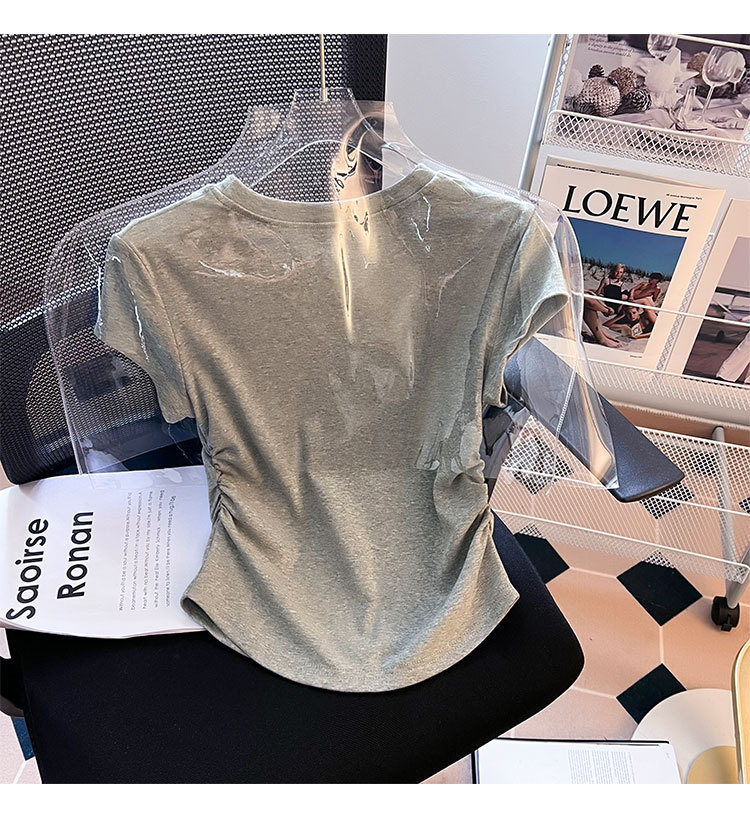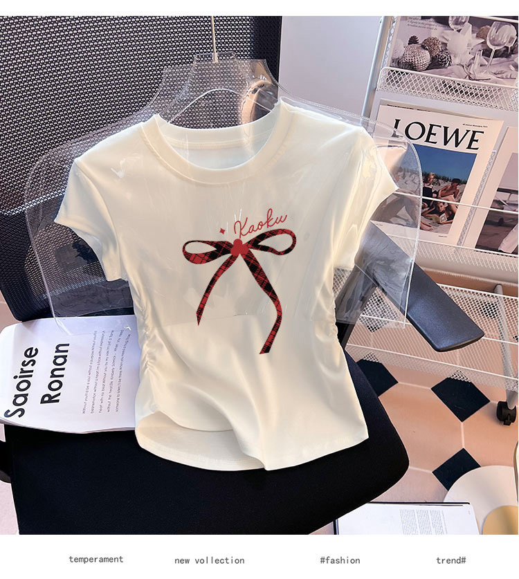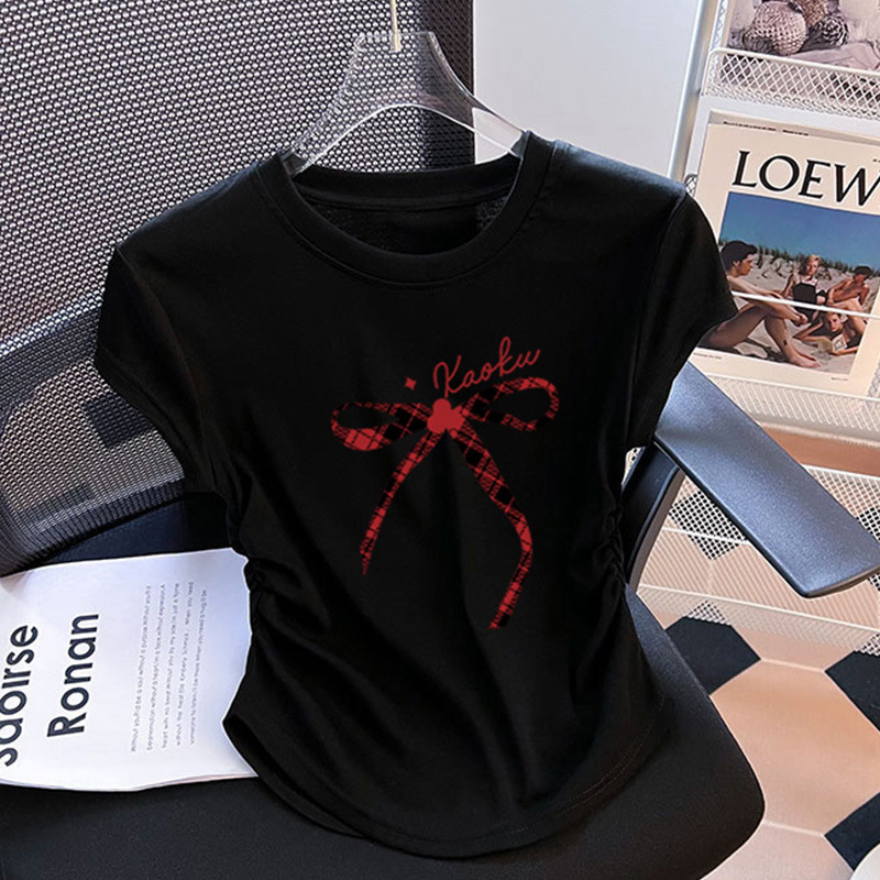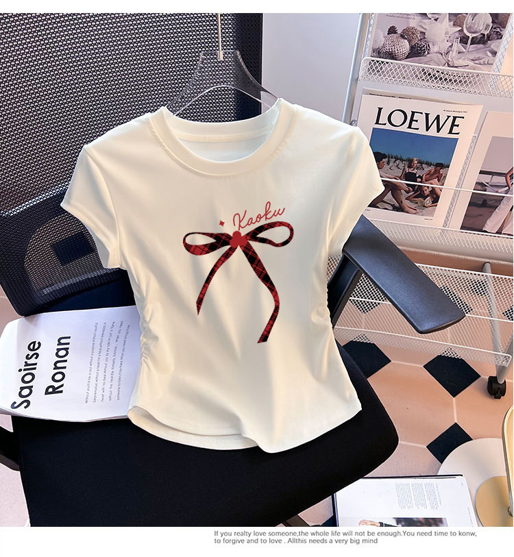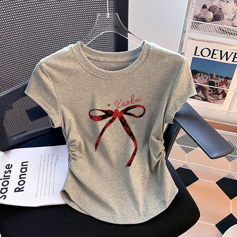纯棉短款短袖t恤女夏季新款设计感别致小个子修身正肩上衣潮